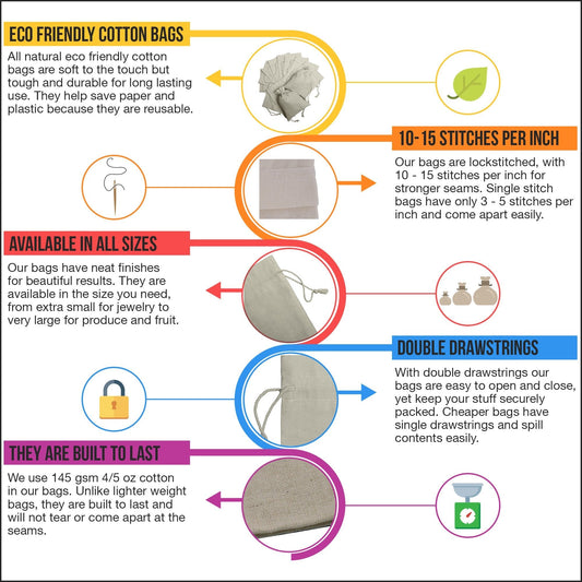 100 Percent Cotton Muslin Drawstring Bags For Shoes Storage Pantry Gifts (12 x 16 inch - 6 pack, Beige)