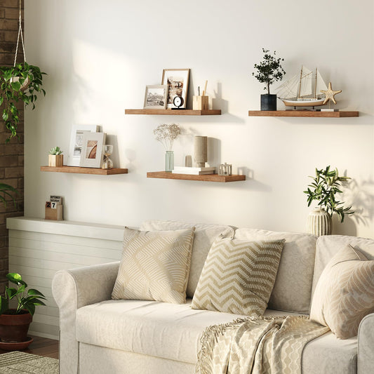 HOOBRO Floating Shelves for Wall, Wall Mounted Shelf Set of 2, 23.6" Hanging Shelf with Invisible Brackets, for Wall in Bathroom, Bedroom, Toilet, Kitchen, Living Room, Office, Rustic Brown BF60BJ01