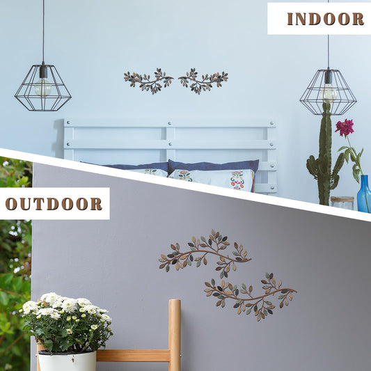 Hotop 2 Pieces Metal Tree Leaf Wall Decor Vine Olive Branch Leaf Wall Art Wrought Iron Scroll Sculptures Above the Bed, Living Room, Outdoor Decoration(Classic Style,Classic Color)