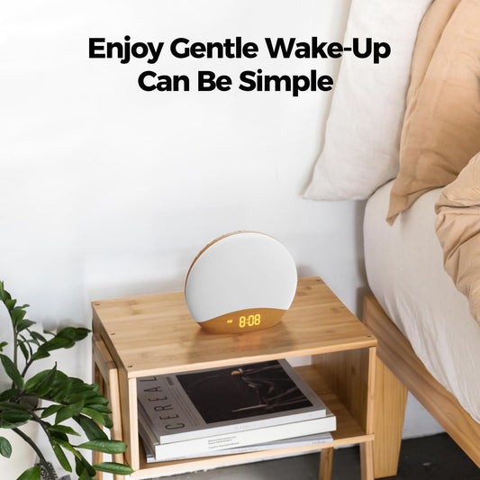 HOUSBAY White Noise Machine Sunrise Alarm Clock, Wake Up Light, Dimmable Night Light, 26 Natural Sounds, Gentle Wake up & Sound Machine for Sleeping, Adults, Kids, Baby-Wooden