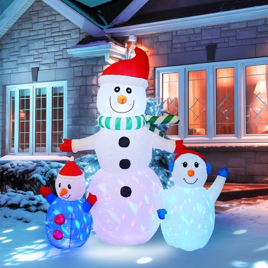 Hourleey 6 FT Christmas Inflatable Snowman Outdoor Decorations, Blow up Snowman Built-in Colorful Rotating LED, Waterproof Christmas Decoration for Yard Garden Lawn Xmas Holiday Decor