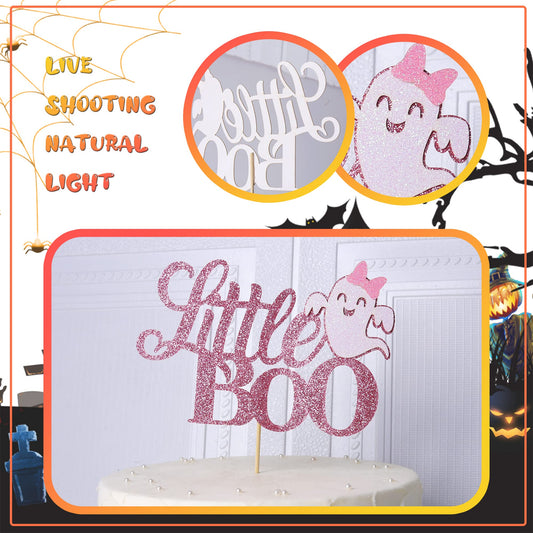 1 Pack Little Boo Halloween Cake Topper Glitter Happy Boo Day Ghost Cake Pick Baby Shower Birthday Happy Halloween Party Cupcake Decoration Supplies Pink