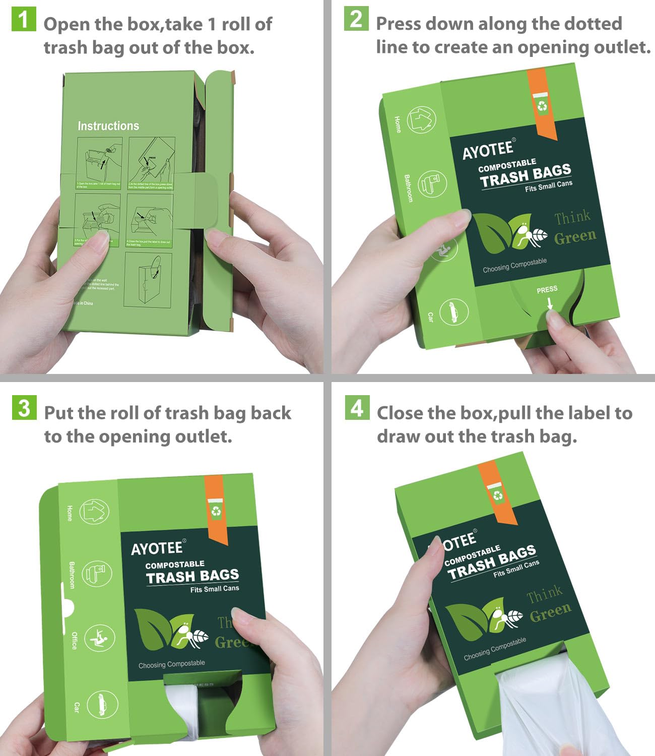 • No smell & Eco Trash Bags: We promote environmental small garbage bags which are unscented, non-toxic and harmless for your health. The compost bags 1 gallon controls the odor very well. The thoughtful box design helps you easy to store and carry