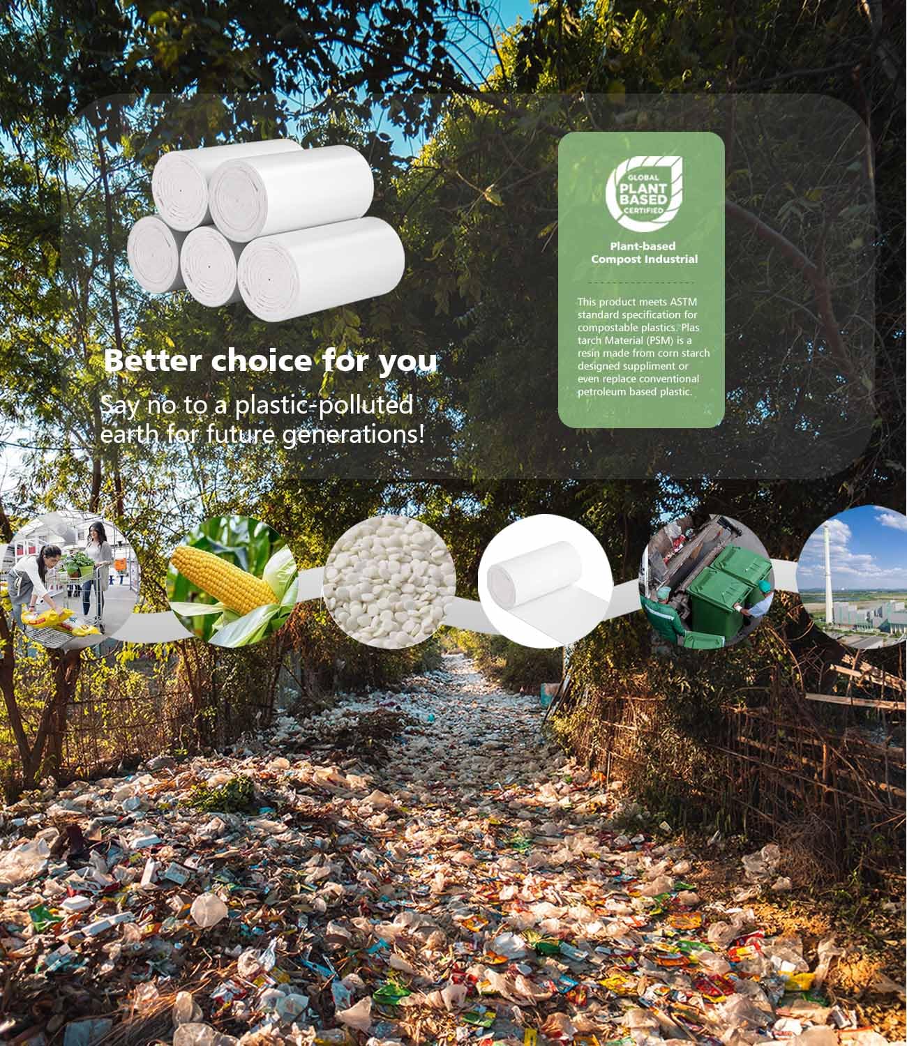 • Compost Bags: The 1 gallon trash bags are made of Plastarch material(PSM), based on natural renewable plant starch extract. You can compost the trash bags in your backyard or home composting facilities without causing damage to the environment