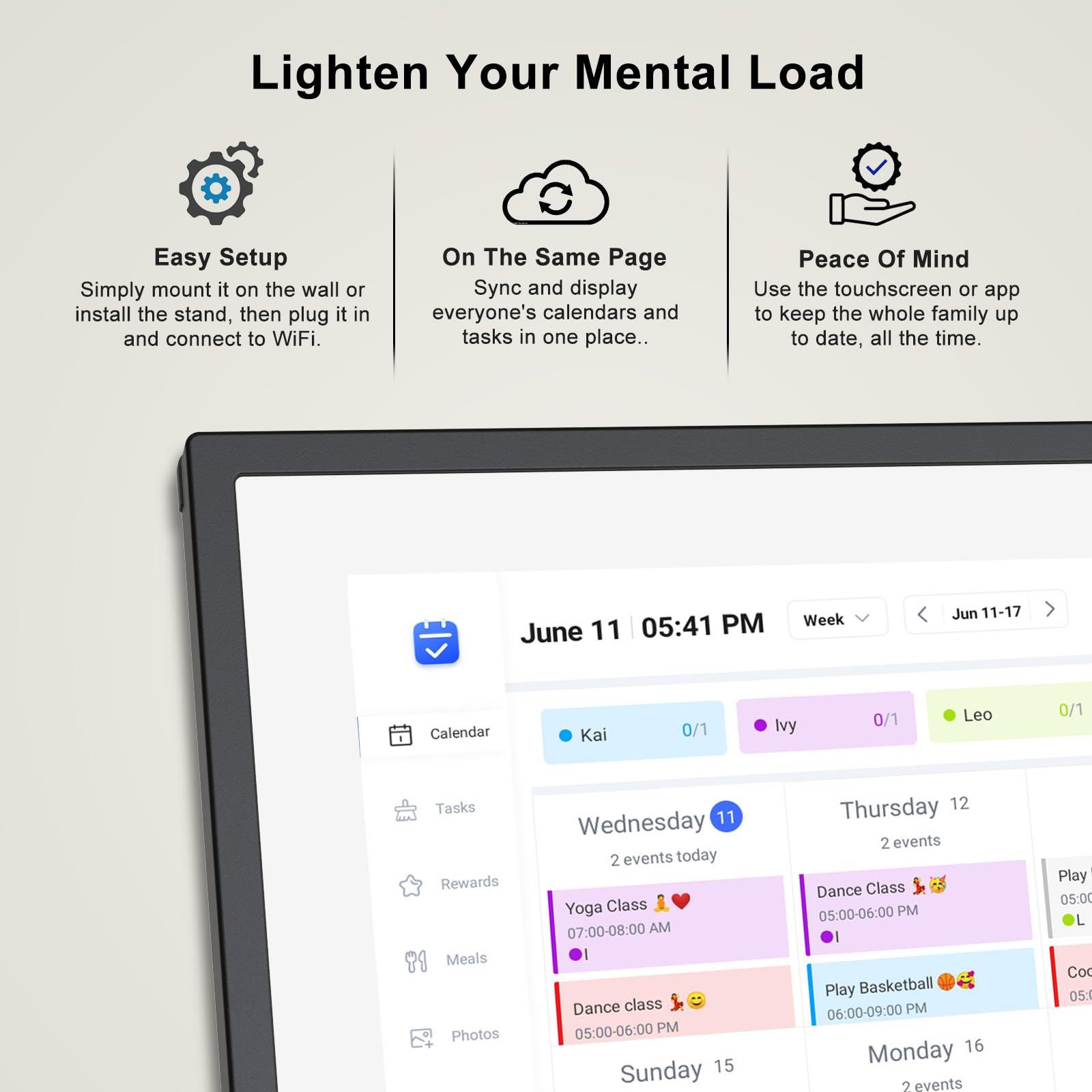 • 【Easy Setup & Use】: Simply plug it in, connect to Wi-Fi, and sync your calendars – all your events will automatically populate and sync. Synchronize with the internet time servers to ensure the utmost accuracy.Add events or chores directly on the device or use the free to download mobile app. Compatible with Google Calendar, iCloud Calendar, Outlook Calendar, Cozi, and Yahoo.