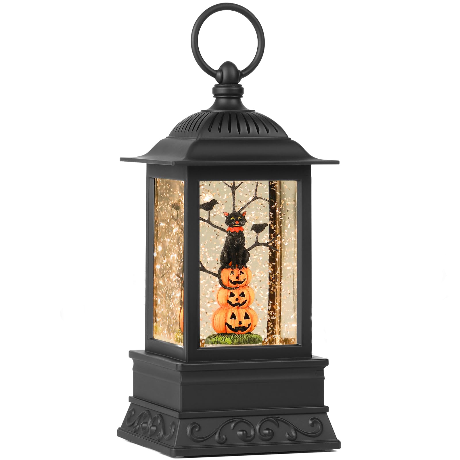 • 【Halloween Decorations】Rich Halloween elements. There is a black cat standing on top of three pumpkins in this snow globe lantern, When turned on, the silver 'snow' swirls around and make a terrifying ghost cry, adding chilling details to Halloween, Day of the Dead, or other horror themed celebrations.