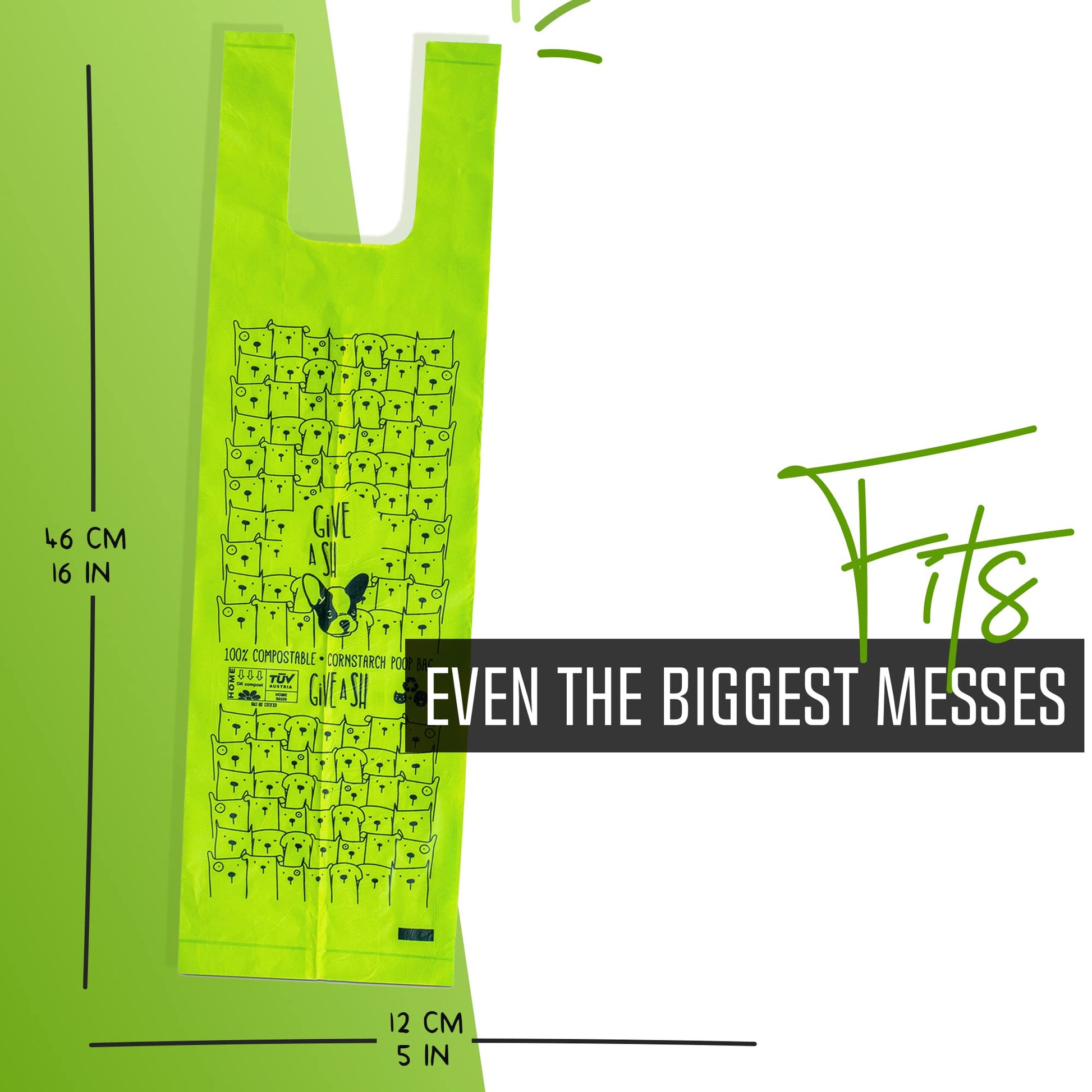• 100% HOME COMPOSTABLE DOG POOP BAGS - Our poop bags for dogs are ethically sourced and carefully manufactured from 100% botanical plant components. We use only Cornstarch, BPAT (compostable polymer), and edible glycerin in the nature-based creation of our dog waste bags. All our products are TÃV AUSTRIA Home Compost Certified to be of ASTM D6400, EN 13432 and NF T51-800 standards! Because we give a shhh