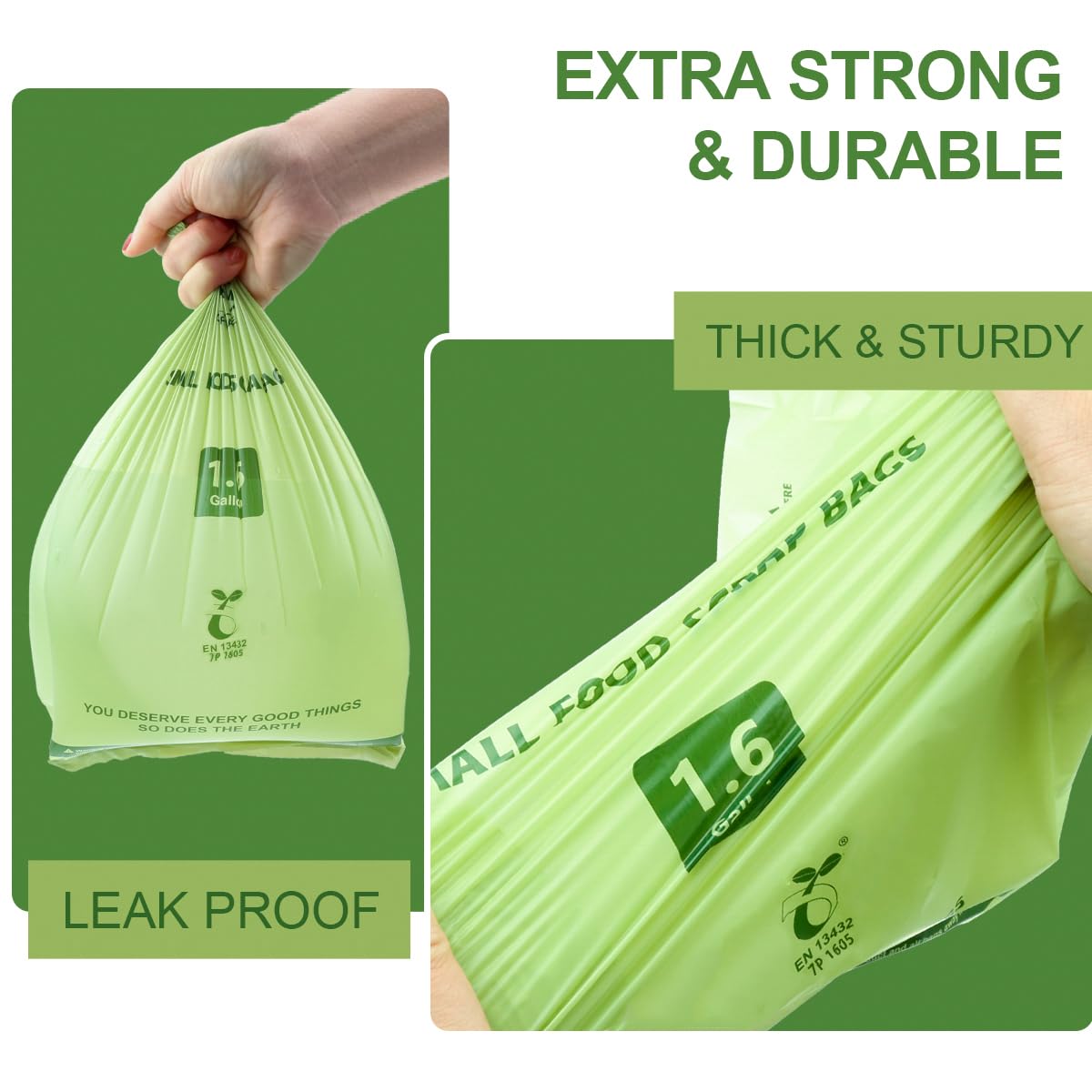 100% Compostable 1.6 Gallon Trash Bags, 6 Liter, 150 Count Kitchen Food Scrap Small Compost Bags for Countertop Bin with Europe EN13432 Certified
