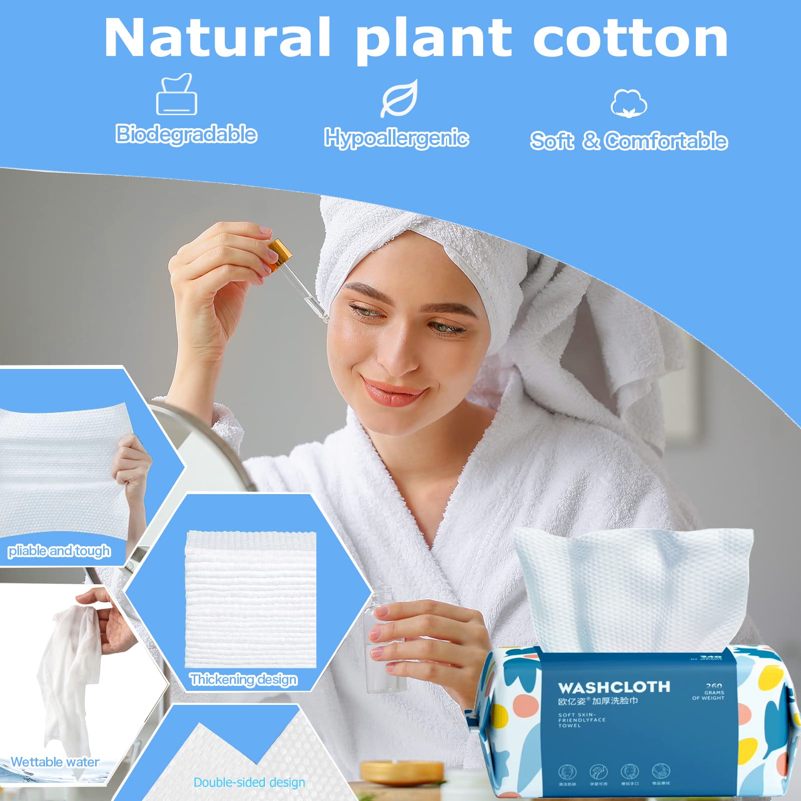 100 Count Disposable Face Towel,Thickening Ultra Soft Washcloths,Facial Cotton Tissue,Lint-free cotton dry wipes Multi-Purpose for Skin Care,Make-up Wipes,Face Wipes and Facial Cleansing