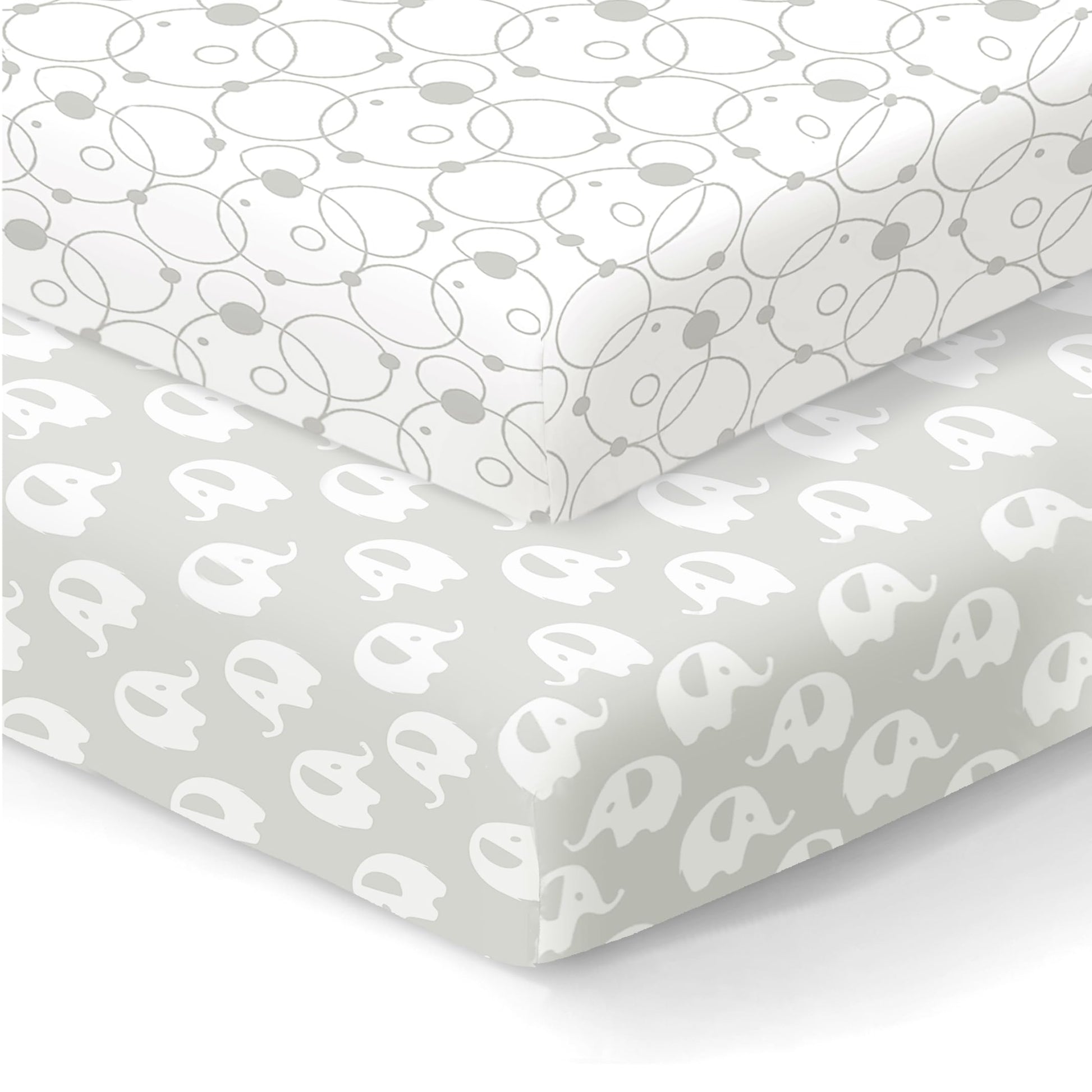 100% Organic Cotton Fitted Sheets for Graco Pack n Play, Babyletto, Pamo Babe, Hiccapop, Dream on Me, Evenflo, Baby Trend, Hygge Hush Portable/Mini Crib/Playards, Beka Bedside Bassinet 2 Pk