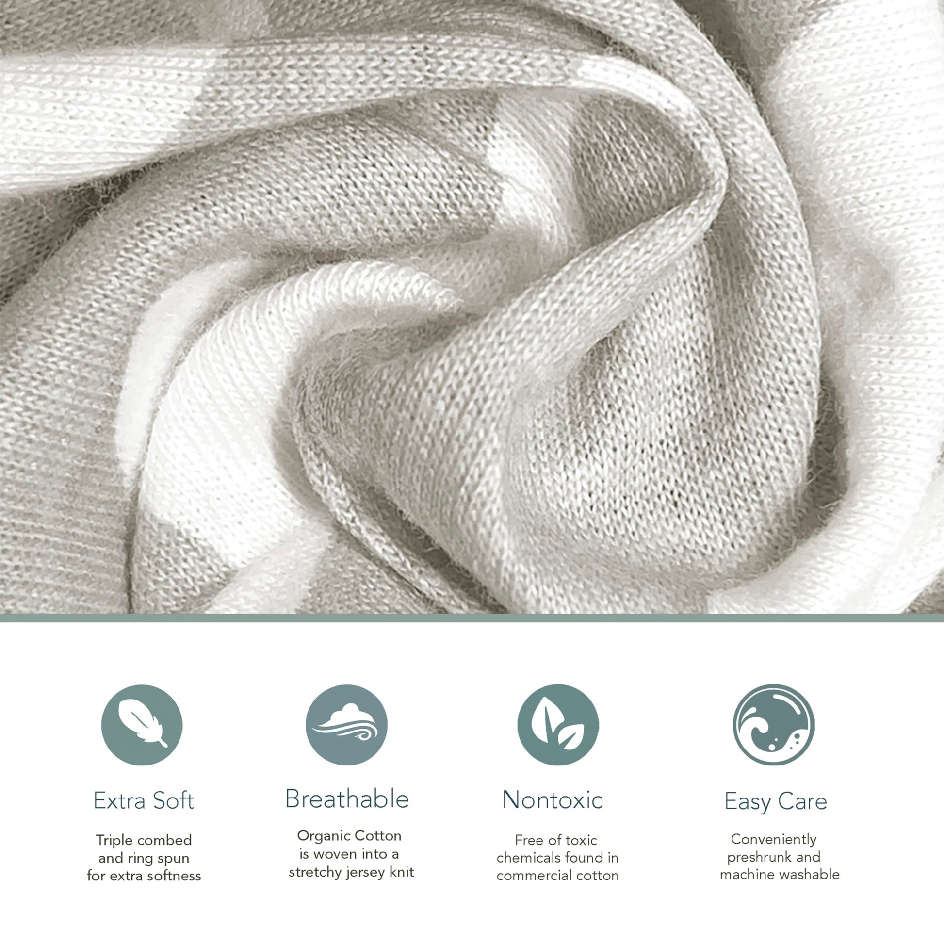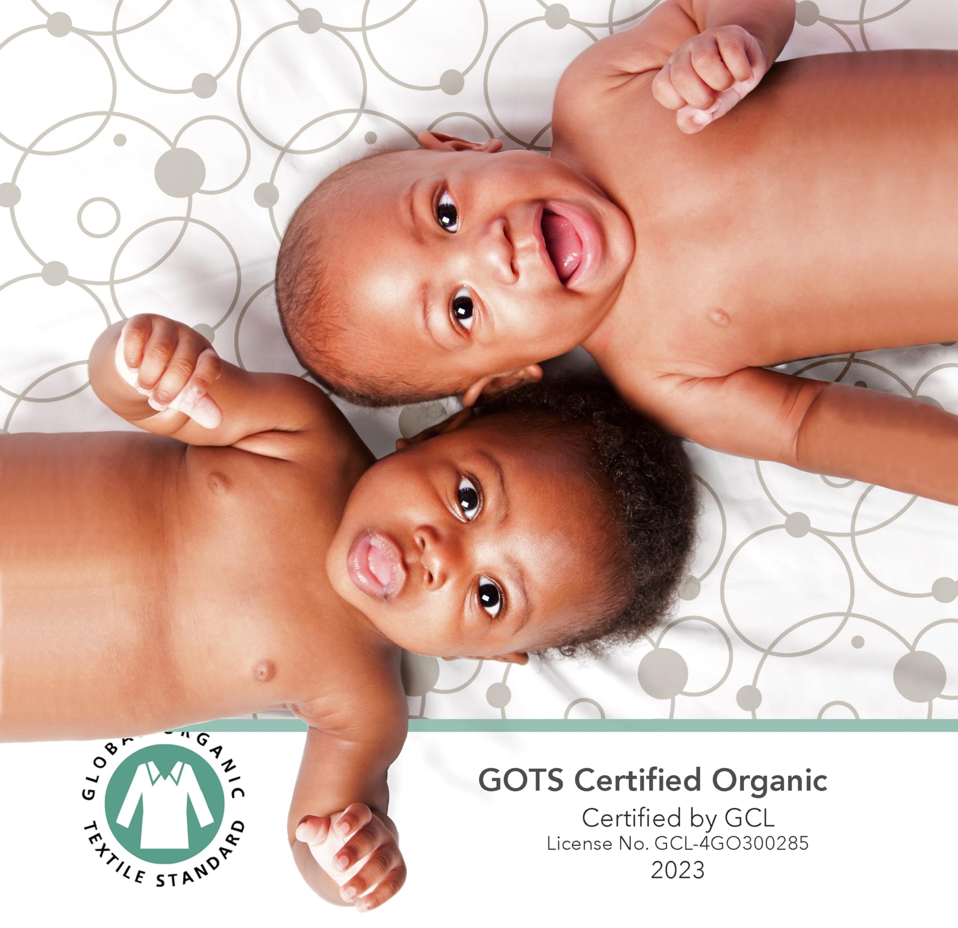 • These adorable sheets are made from 100% organic cotton, woven into a soft and durable jersey. Our fitted mattress sheets are certified by Global Organic Trade Standards (GOTS), for the health of both your baby and the environment.
