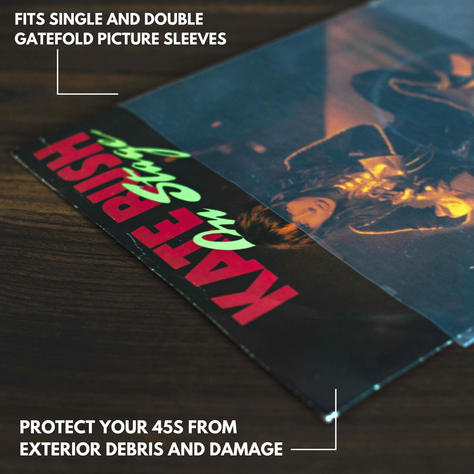 • 📏 Snug 7.5' x 7.5' Fit – Designed for 45s, gatefolds, and picture sleeves. These sleeves won’t crinkle or crush easily and 45s slide in smoothly.
