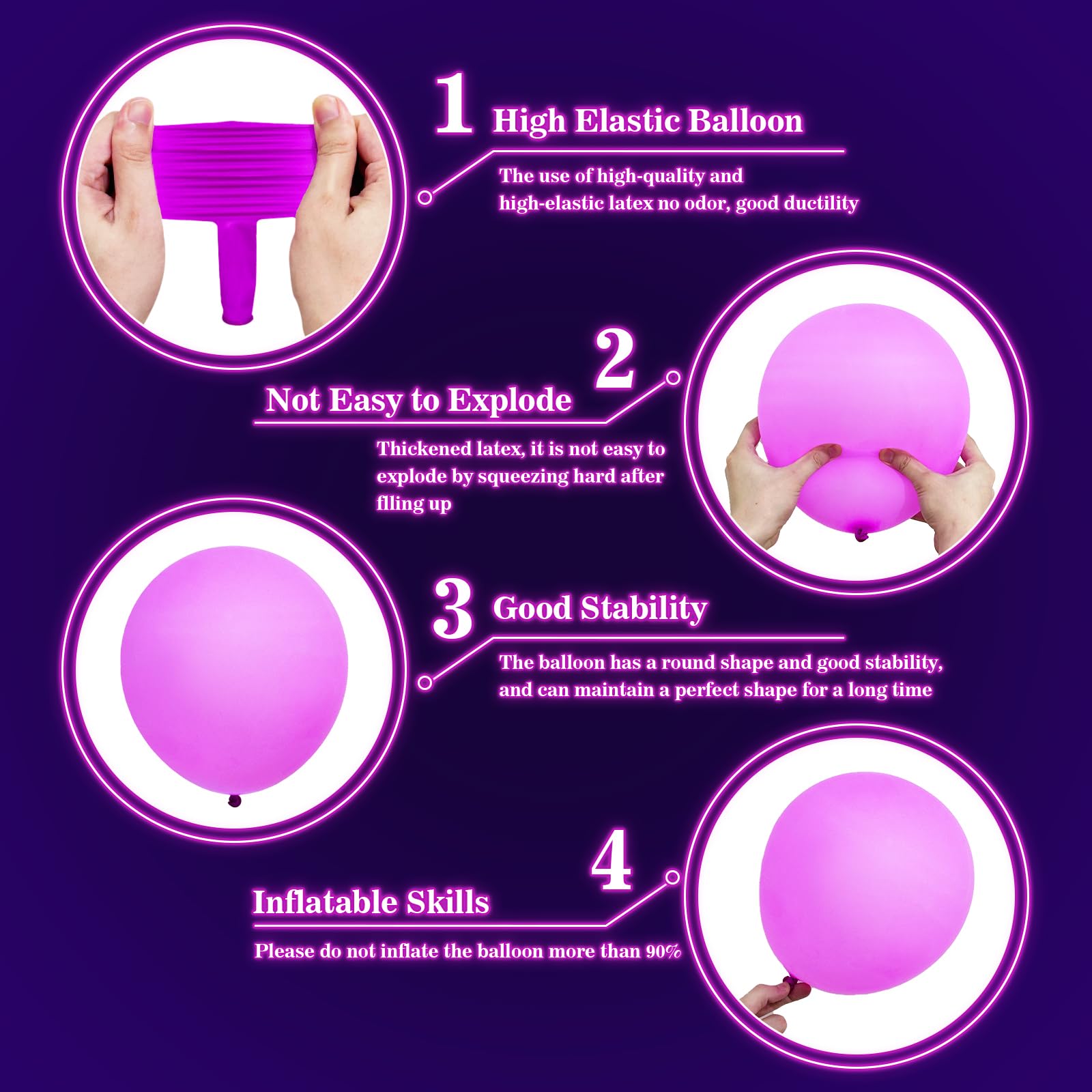 • ★【Please note】:Neon colored balloons will not glow in the dark without a UV black light response. If you have any questions, please feel free to contact us.