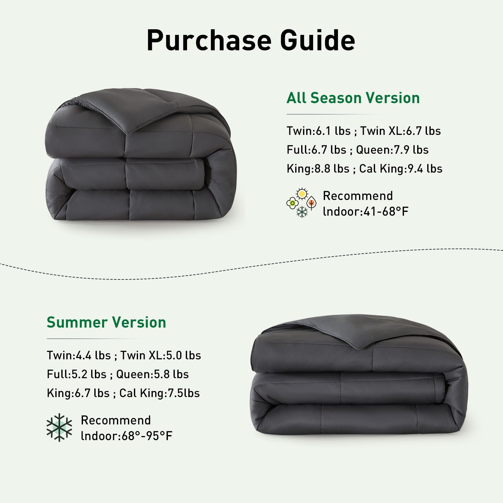 • 【Breathable and NON-MUGGY Fabric】 We focus on sleep quality and notice that some people sweat a lot at night, this quilt will help you eliminate this worry. The comfoter has Natural Air Permeability, which can effectively Reduce Muggy and Sweating. The interior of the quilt core maintains almost constant temperature and humidity. No matter how wet, dry, hot or cold the outside is, the temperature will be adjusted with the human body temperature to improve the quality of sleep.