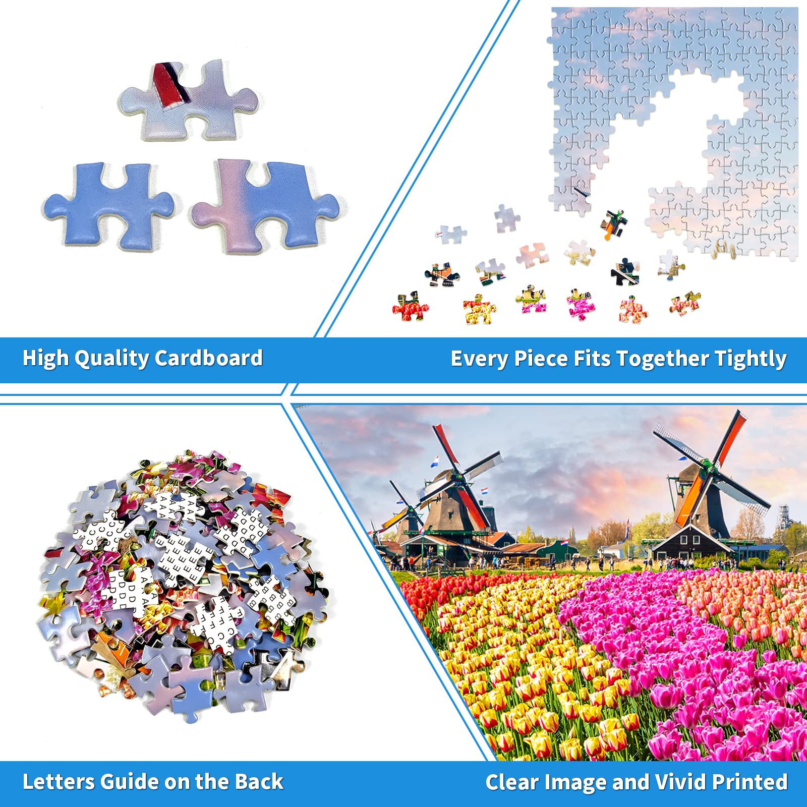 • 【Unique Design】: We use precision cutting technology to ensure each piece fits perfectly and has no puzzle dust. Each puzzle piece is printed with no-glare, non-toxic inks. Letters guide on the puzzle back for extra help to make the puzzle game easier.
