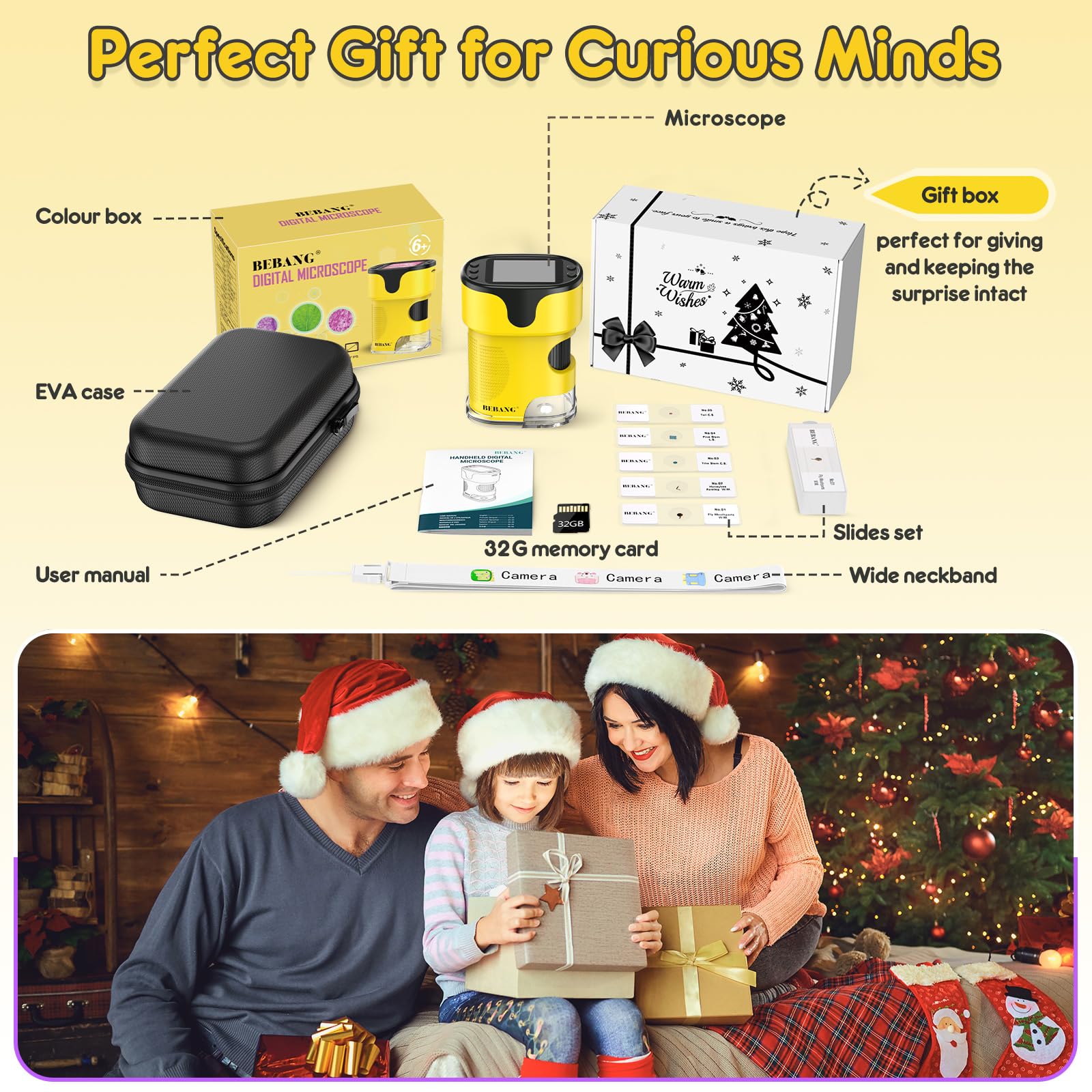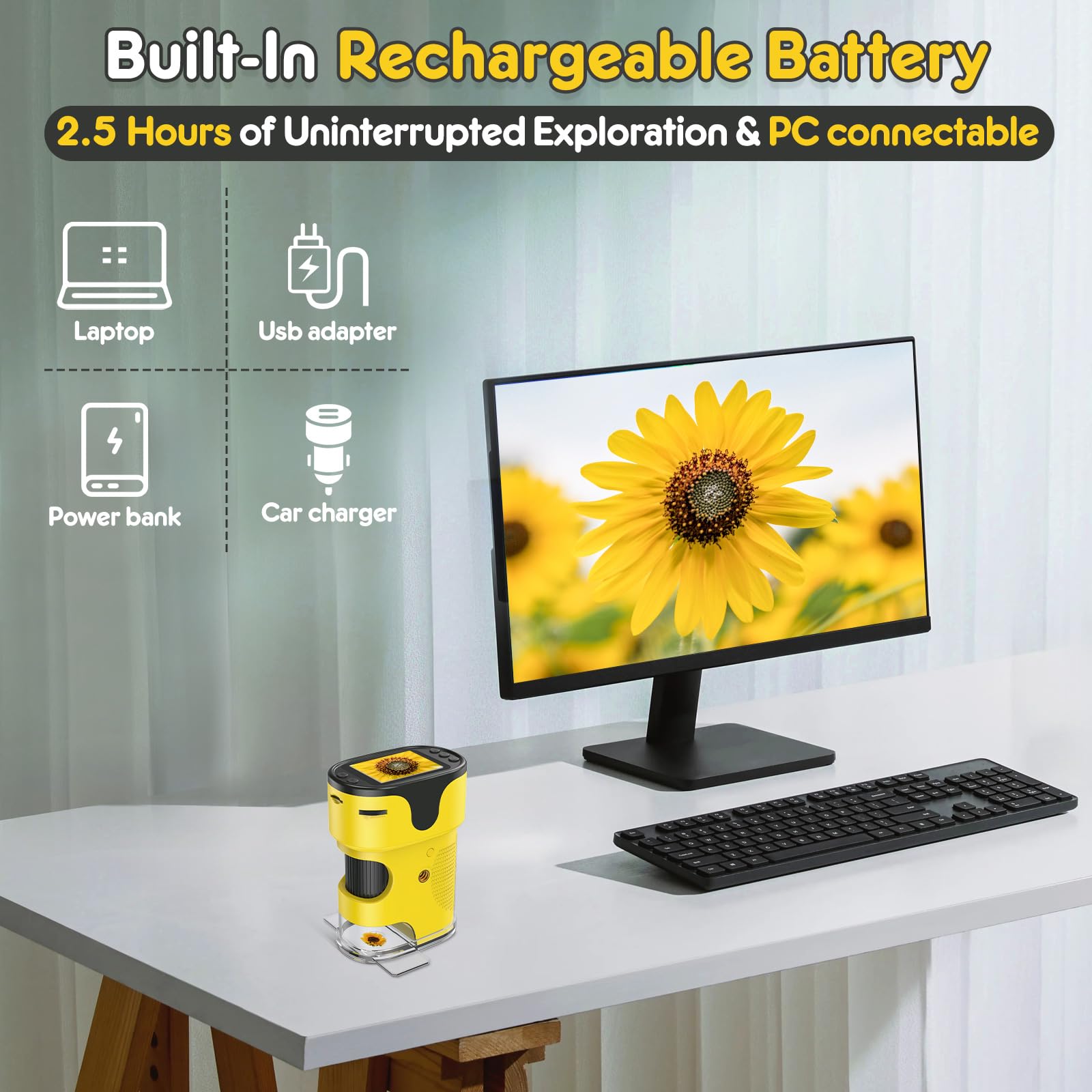 1000X Handheld Microscope for Kids 4K 2.0" Screen Rechargeable Mini Pocket Digital Microscopes w/Slides Kit Portable Edu Gift Age 4-6 8-12 Children Students (Yellow)