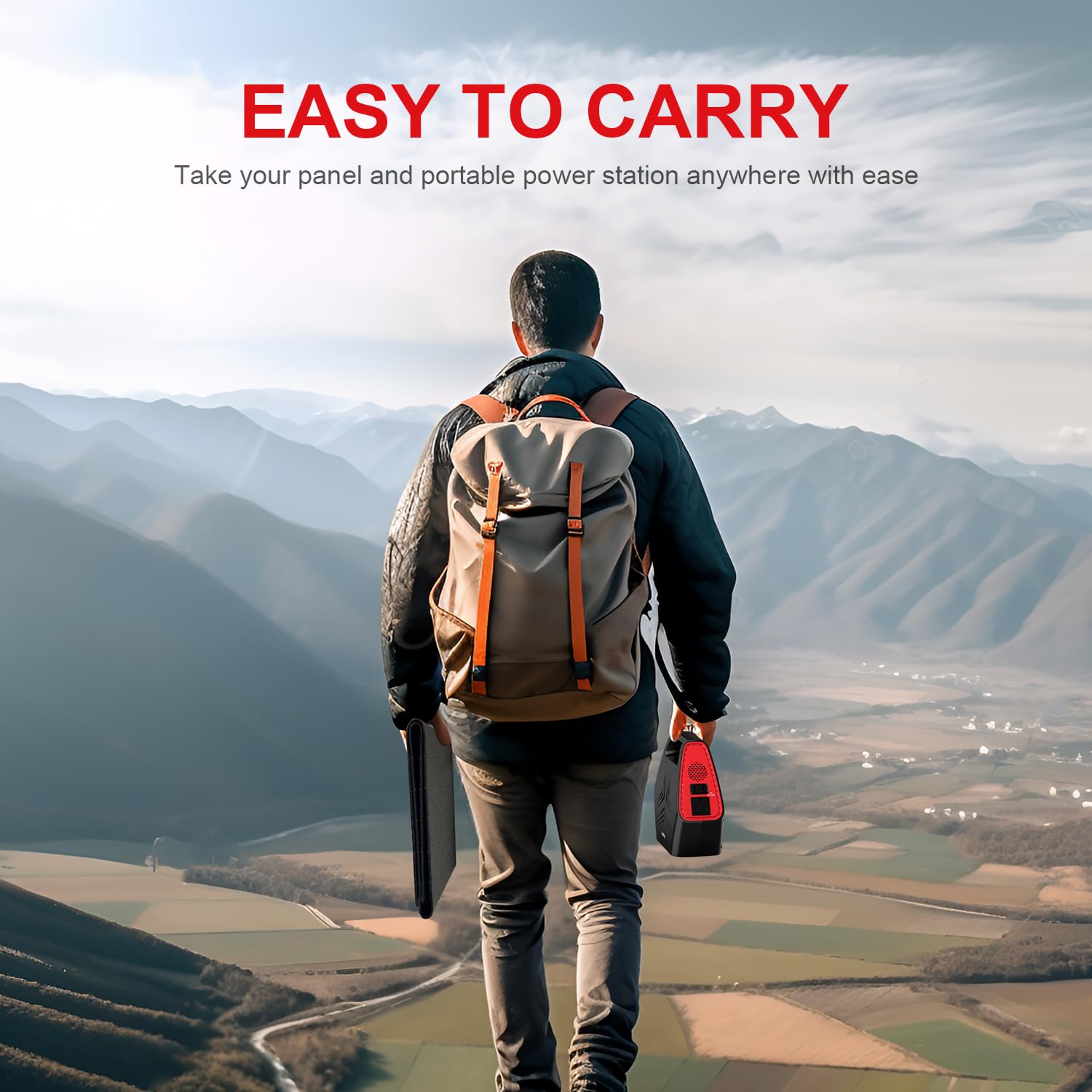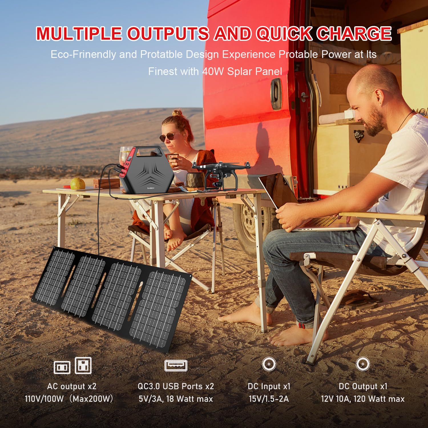 • Wide Compatibility Solar Panel: 40W solar panel for power station come with 10*DC adapters, compatible with most portable power stations/solar generators on the market. The 40W solar panel for camping designed with 3 output ports of different type: 1* DC output (18V/2.27A Max), 1*USB-C Output, 1* USB QC3.0. Wherever you are, it can charge your phone, iPad, laptop, mini fridge, camera, GPS, power bank and other devices
