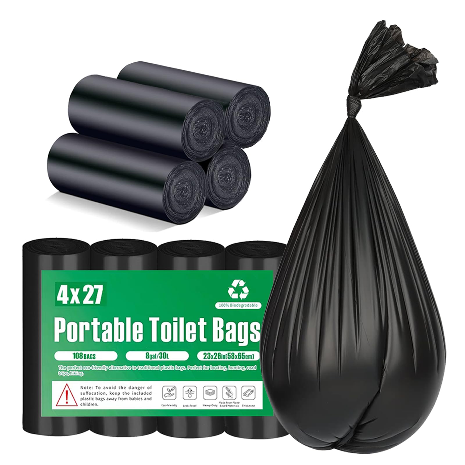 • 【108 Portable Toilet Bags for Buckets】27 count biodegradable toilet bags per roll, total 4 rolls, 108 camping toilet bags you can get. You'll get more and better quality for less money than other compost toilet bags for portable potty on the market.