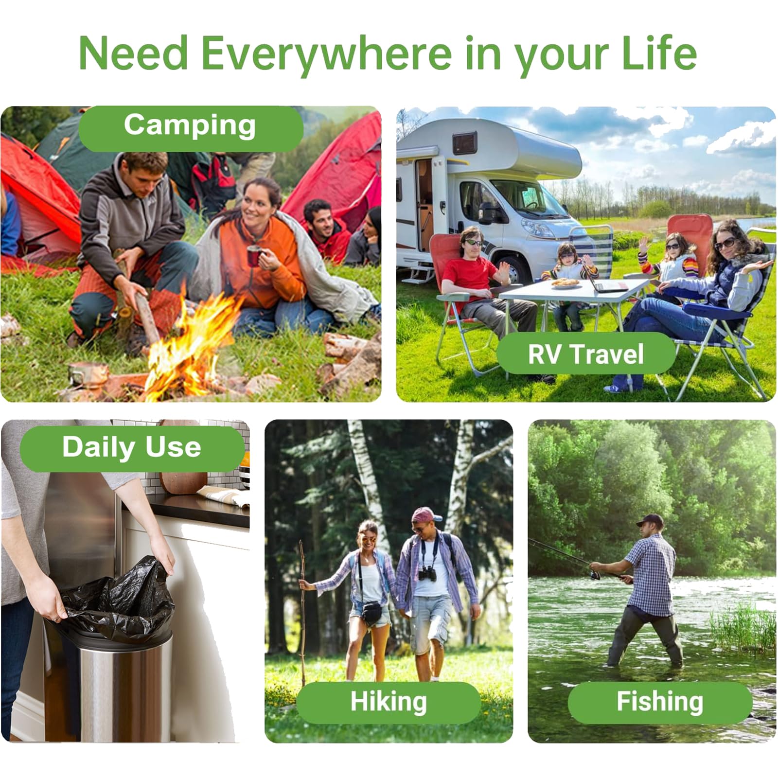 • 【The Perfect Fit】Our porta potty bags for portable toilet works with most 5 gallon or 8 gallon portable toilet, camping toilet, portable potty for adults, bucket toilet seat, folding toilet, boat toilet, rv toilet, travel car toilet, or as a daily trash can, etc. The disposable camping poop bags for people are perfect for camping and other activities.