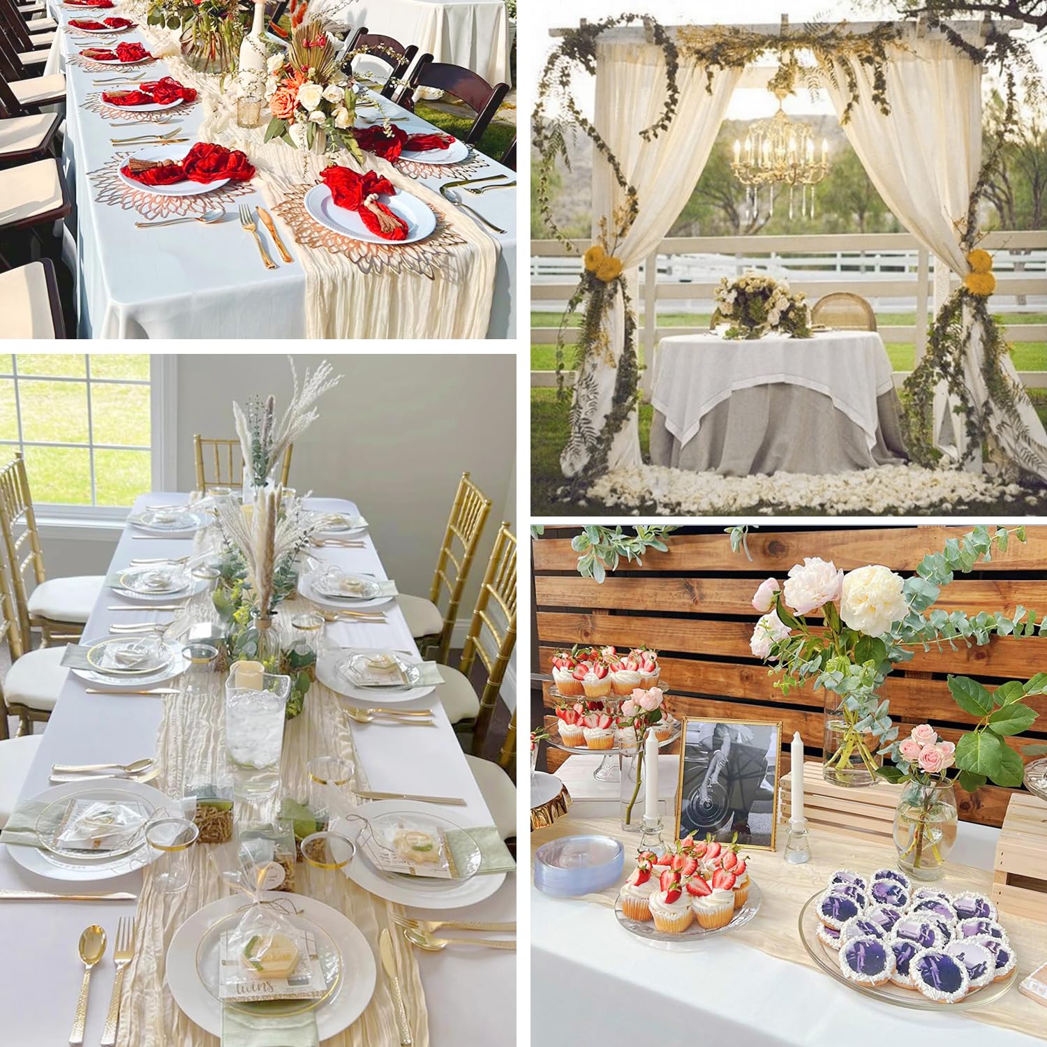 • 🌟【Versatile Natural Cheesecloth Table Runner Bulk】Beige cheese cloth table runner cream looks nice on various occasions, such as wedding, baby shower, bridal showers, birthday parties, theme party, engagement banquet, candy buffets, the top of the piano, fireplace, dessert tables, weddings arch, Valentine's Day, Thanksgiving, Christmas and other special occasions. The pretty table runner well decorates home, hotel, wedding, parties, grand estates and gardens and more, that makes your life chic.