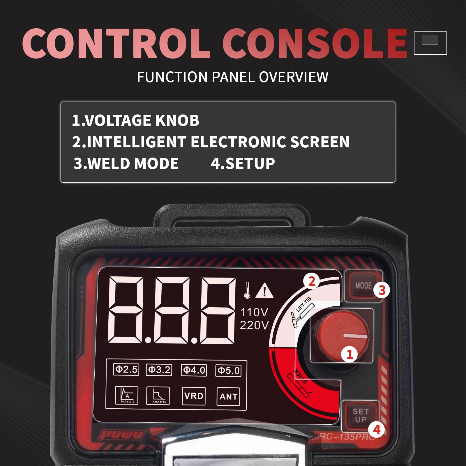 • 【Unmatched Performance】Experience superior welding performance with the MINI MMA ARC-135 PRO. Operates on a single 110V voltage, offering a precise digital current display ranging from 20A to 135A. Featuring a 60V no-load voltage and a reliable 20% duty cycle, this machine is designed with a robust half-bridge core structure for enhanced stability. The 2-meter power cord, made of 16AWG wire and equipped with an American-style 110V plug, ensures convenience and efficiency.