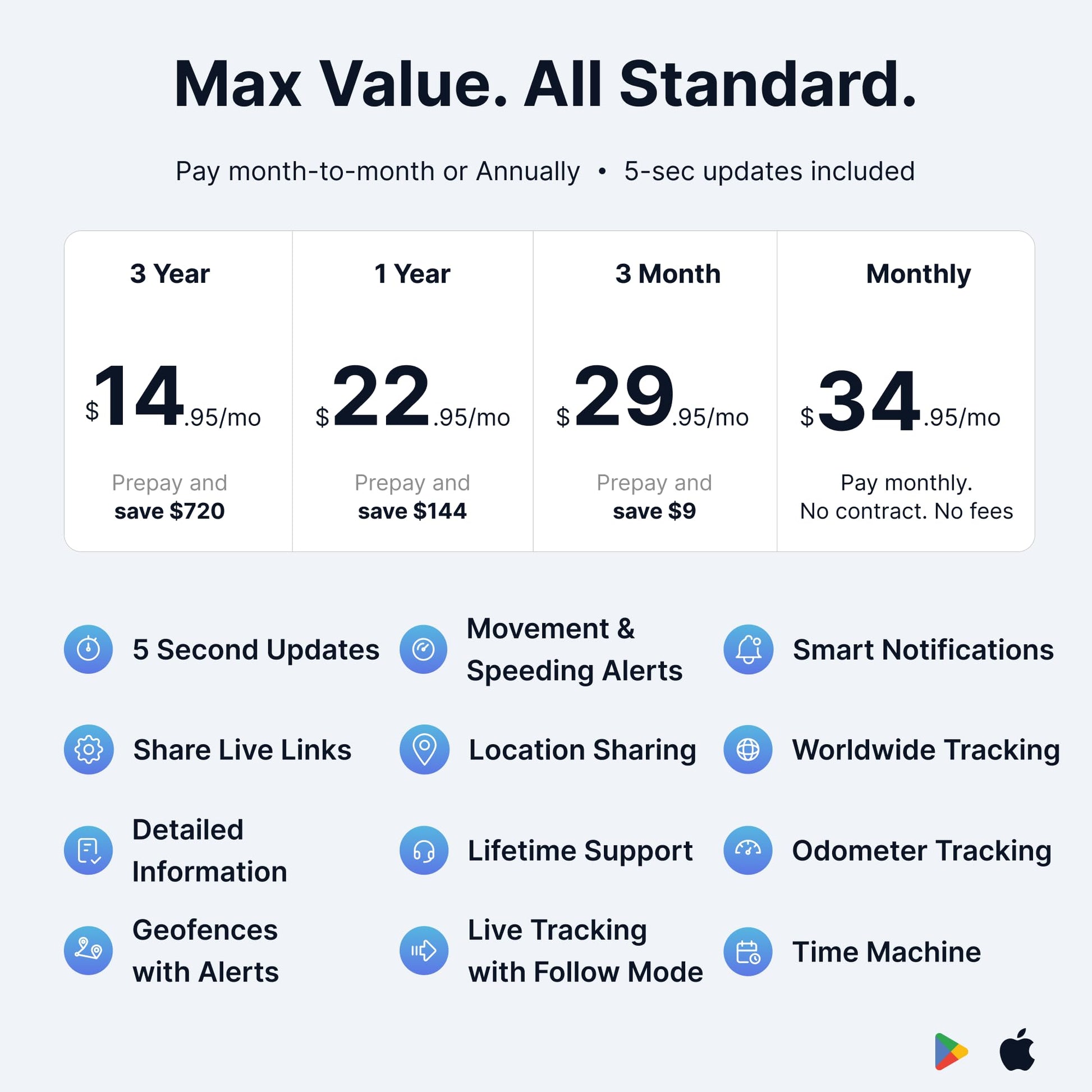 • LOW COST PLAN REQUIRED: Quickly download our easy-to-use app. Activate the device, choose your plan, and start tracking. Subscriptions as low as $14.95/mo. Get 24/7 support on GPS trackers with an active subscription. Worldwide coverage - update Network Mode in app before leaving the country.