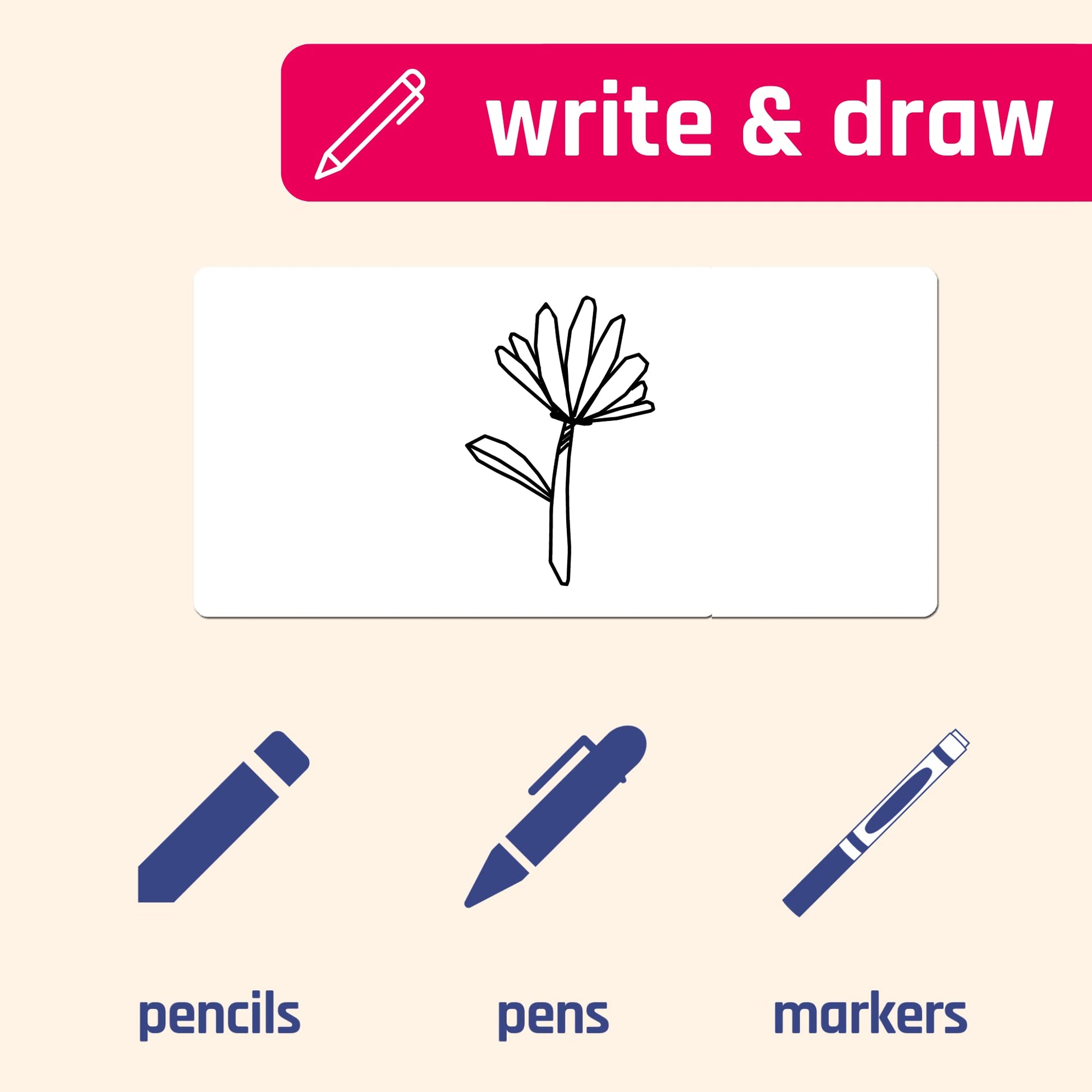 • Easy to write. Surface is similar to writing paper. Write on it with pens, pencils or markers.