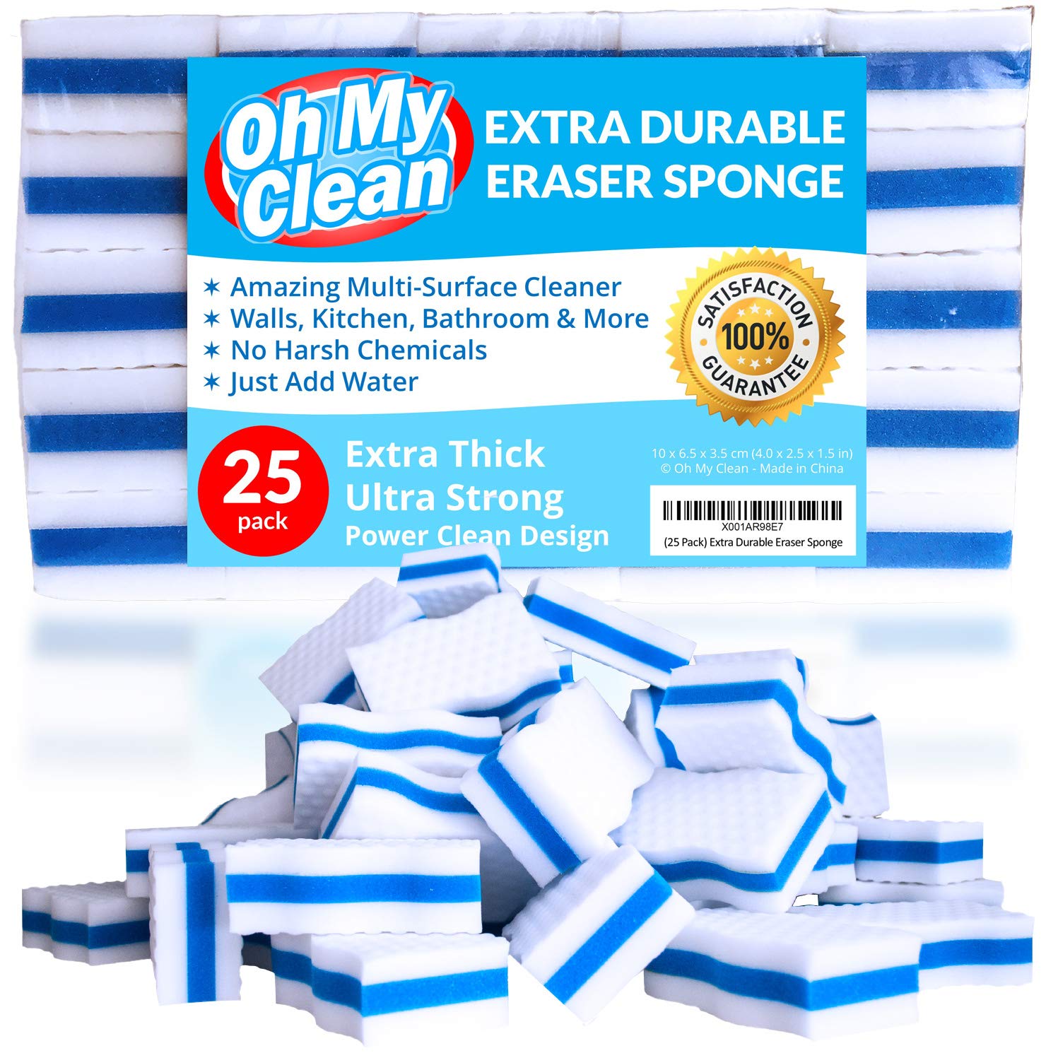 • While Some Other Eraser Sponges are too small, don’t work, or simply fall apart, we raised the bar and designed our eraser sponges for long lasting cleaning power. With a Power Clean textured surface, unique 3 layer wave design, and premium quality extra dense melamine foam, Oh My Clean eraser sponges easily lift away scuffs and grime, every time.