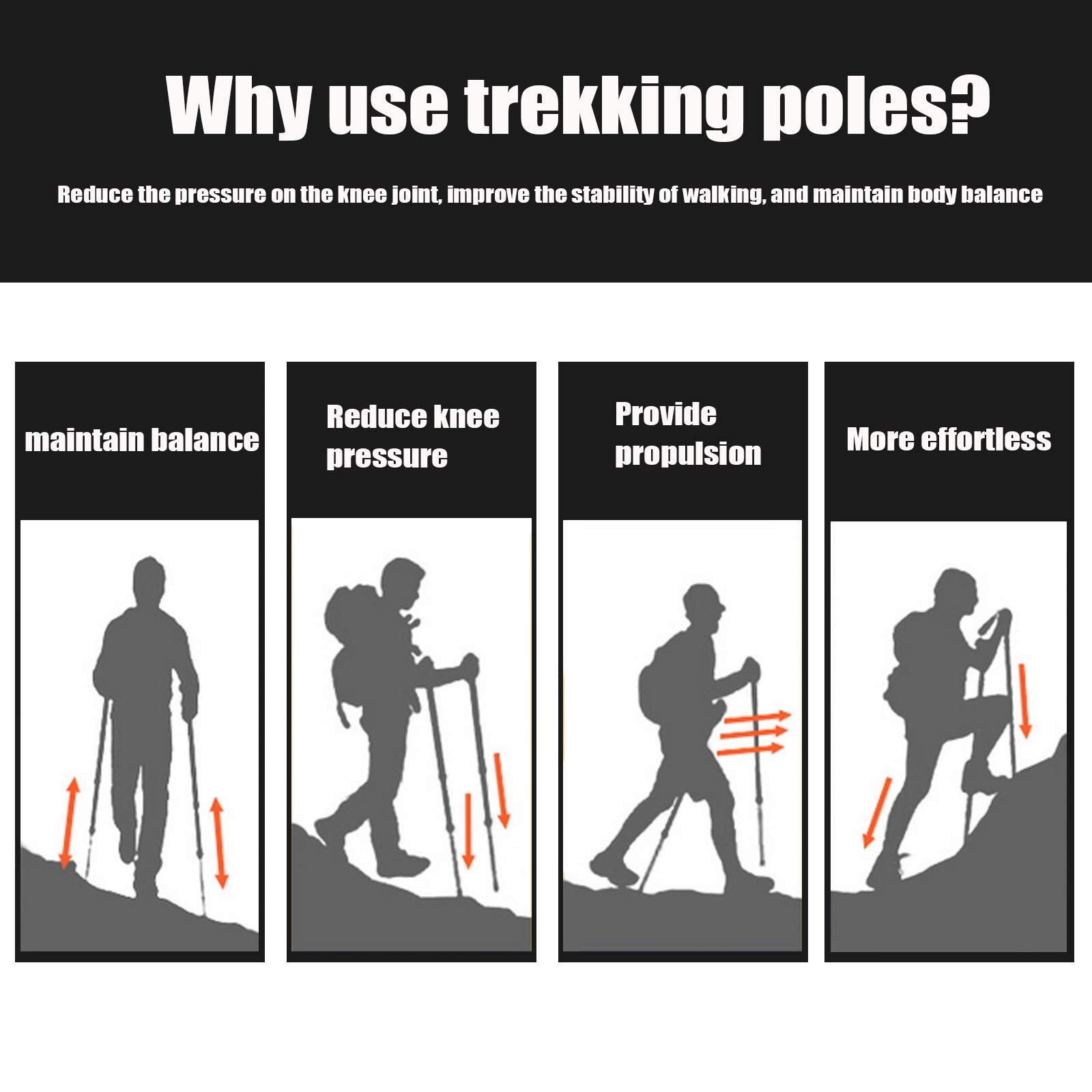• Buy your complete set now: Aihoye Walking Pole is available in black, blue,red,purple. Our product set includes 2 trekking poles, 4 rubber tip protectors, 2 snow baskets, 2 mud baskets, 2 boot tips, 1 carrying bag,trekking pole tip is suitable for all road conditions, whether off-road is concrete or mud, ash tree, mud or snow, these lightweight trekking sticks are your trekking The best supplement