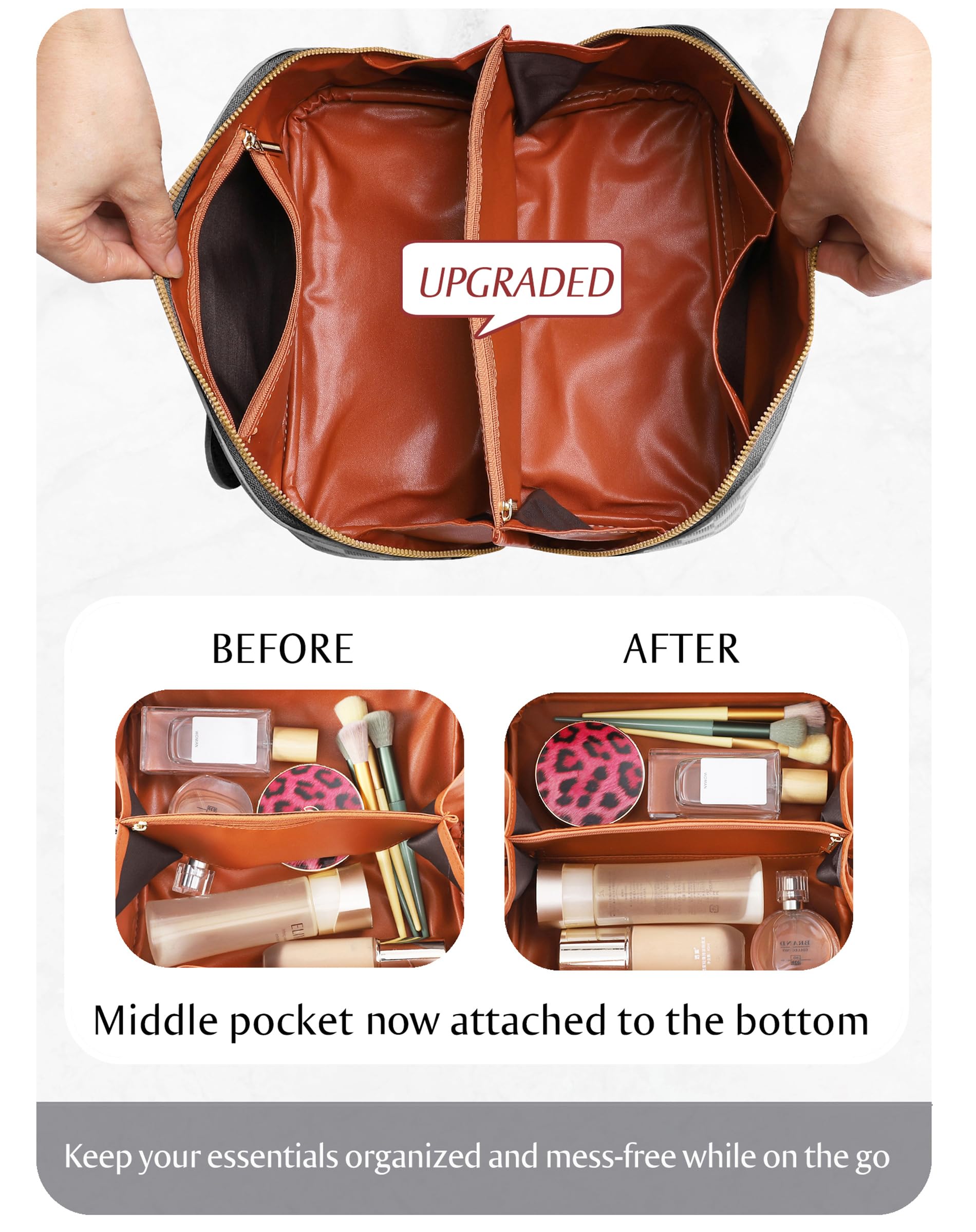 • Multifunctional & Practical - Not only as a cosmetic bag and toiletry bag, but also as an accessory organizer bag. Made of upgraded PU leather,waterproof ,soft, comfortable, lightweight and tough.Suitable for home, outdoor, travel,the multi-functional makeup bag makes your life more convenient and easy.