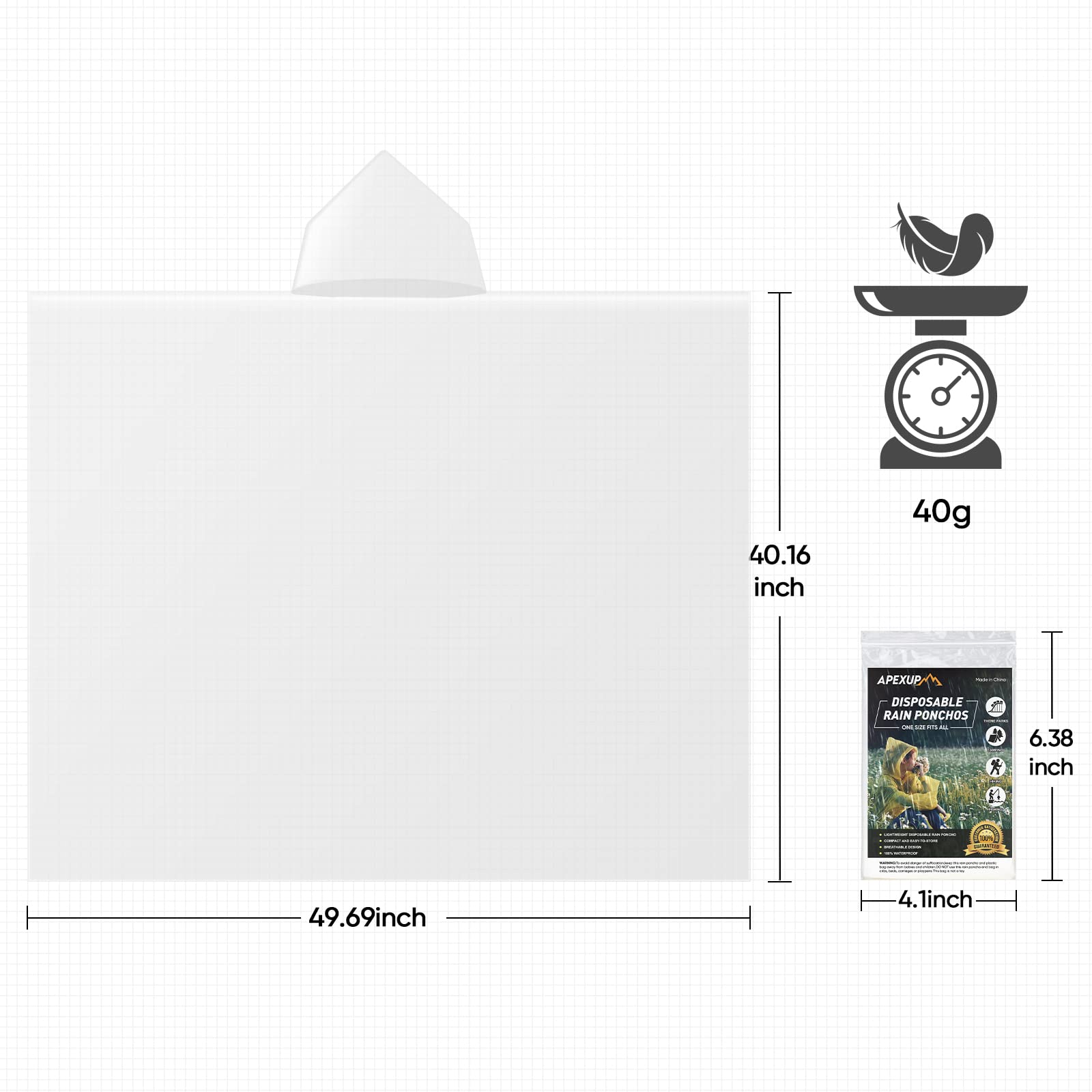 • [VERSATILE APPLICATION] APEXUP disposable rain poncho adult will keep you dry for outdoor activities of any kinds such as hiking, camping, picnic, theme park, and outdoor game watching. Great gift idea for hunting gear for men, rain gear, or bushcraft gear.