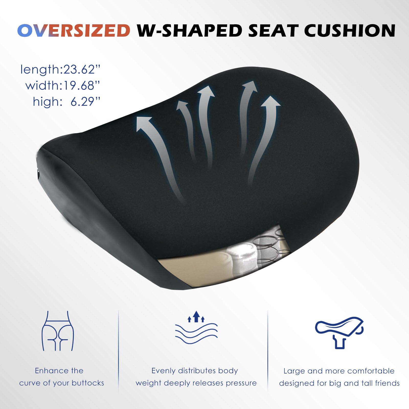 • ใ€๐—ข๐˜ƒ๐—ฒ๐—ฟ๐˜€๐—ถ๐˜‡๐—ฒ๐—ฑ ๐—จ-๐˜€๐—ต๐—ฎ๐—ฝ๐—ฒ๐—ฑ ๐—ฆ๐—ฒ๐—ฎ๐˜ ๐—–๐˜‚๐˜€๐—ต๐—ถ๐—ผ๐—ปใ€‘:The oversize mesh chair features an oversized U-shaped seat cushion designed for ultimate comfort and support. With dimensions of 23.62W 'X 19.68D', 6.3 'thick, the cushion is generously sized to accommodate big and tall users. Its premium spring-pack structure evenly distributes body weight, deeply relieving pressure while enhancing the natural curve of your hips and buttocks. Perfect for extended sitting sessions.