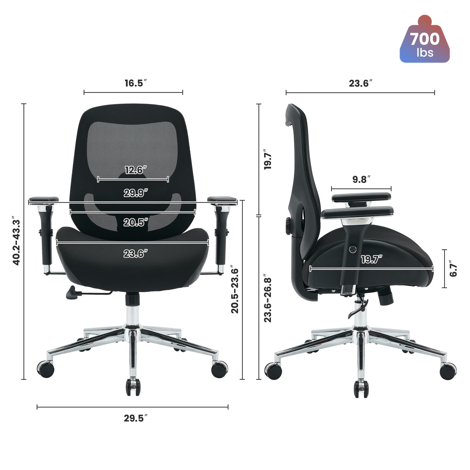 BOSMILLER 700lbs Big and Tall Office Chair with Wide Thick Seat Cushion for Sitting All Day,Ergonomic Mesh Desk Chair with Adjustable Lumbar Support for Heavy People,4D Armrests