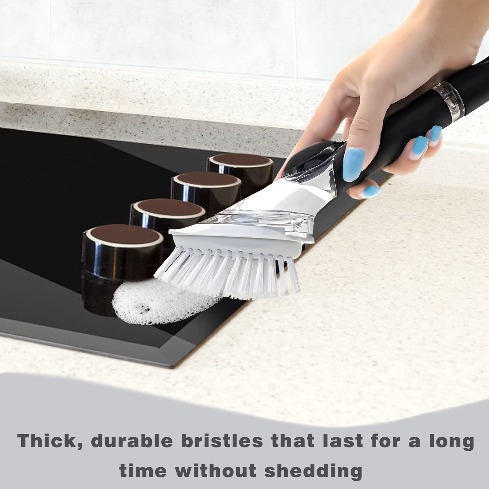 • 【Perfect Design】- The soapy water will come out of the small hole in the middle of the brush as originally designed, not out the sides.