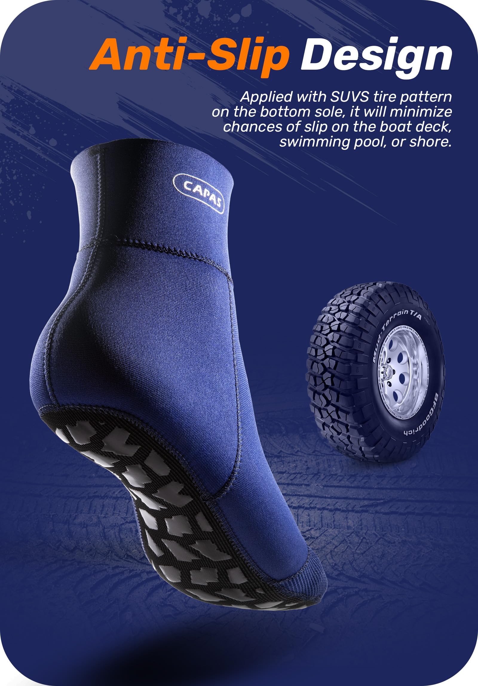 • 【Keep Warm for Water Sports 】Due to the CAPAS unique Sewing Tech and the 2mm drysuit neoprene material that has a great performance against the cold, the water socks can prevent water from seeping into the socks to a large extent, keeping your feet warm throughout your water sports.