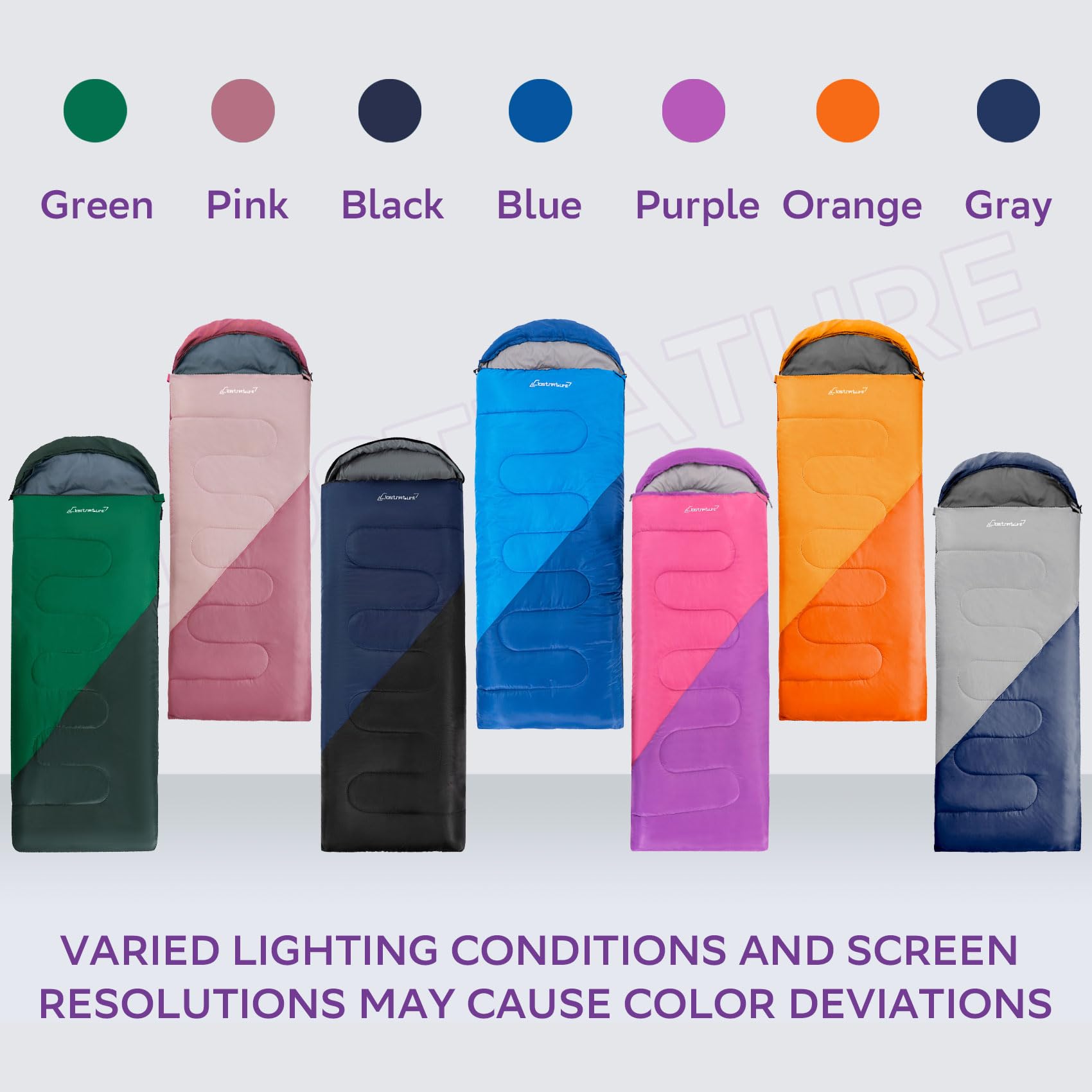 • SUPERIOR MATERIAL: This lightweight sleeping bag with a perfect balance between warmth and quality. High air permeability shell combined with hollow fiber fillings provides a warm and dry space no matter in Winter or Summer! No more shivering uncontrollably sleeping in the backcountry. The fabric is waterproof and difficult to stain, easy to clean by wiping