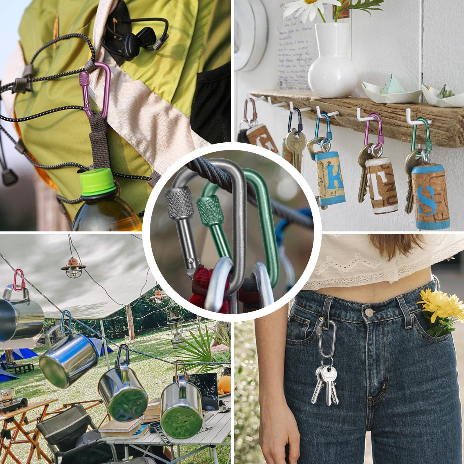 • 【Safety Lock】With D shape quick spring loaded gate design, screw can lock the carabiner to hold the bag, water bottle, key ring or other things and avoid falling off.