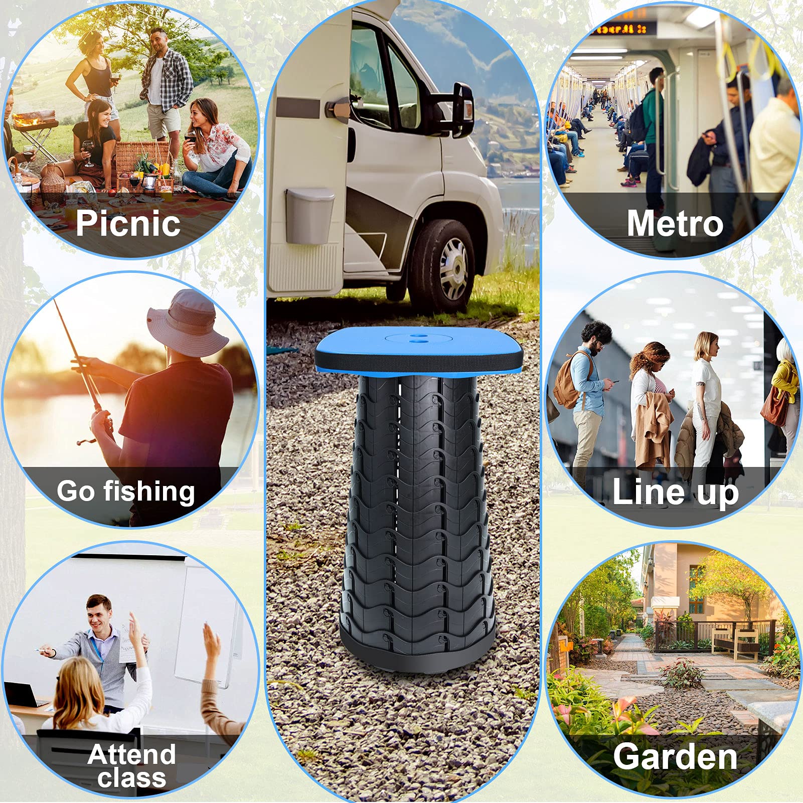 Deer's Life Square Portable Folding Stool, Upgrade Full Color Collapsible Stools for Adults Heavy Duty 485lbs Yet Small Lightweight Telescoping Retractable Camping Stool (Blue, Square)