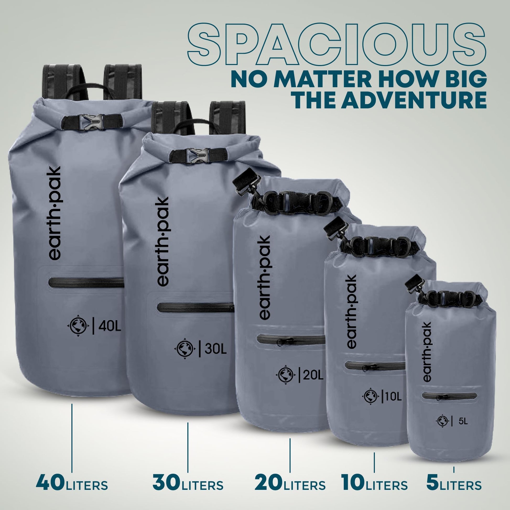 Earth Pak Waterproof Dry Bag with Zippered Pocket - Waterproof Dry Bag Backpack Keeps Gear Dry for Boating, Camping, Fishing, Beach Drybag, Kayak Accessories - Dry Bags Waterproof with Phone Case 30L