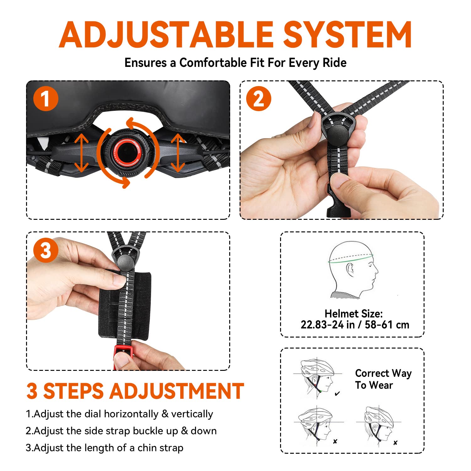 • Perfect Sizing Adjustment: EASTINEAR bike helmet is equipped with a multidimensional regulation system, users can easily adjust the size not only up and down but also head perimeter. The helmet stays steadily with head in the correct place with the help of the adjustable straps and multidimensional adjustment.Head size: 58-61cm /22-24 inch. Please measure the head circumference correctly before buying.