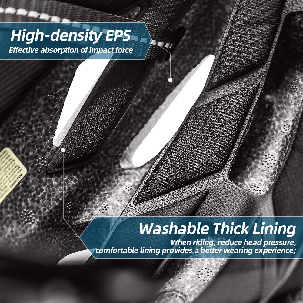 • Durable and Strong Protection: EASTINEAR bike helmet provides excellent protection and high performance impact buffering with high density EPS material and stable PC shell. The lining and reflective straps will improve overall safety and wearing experience