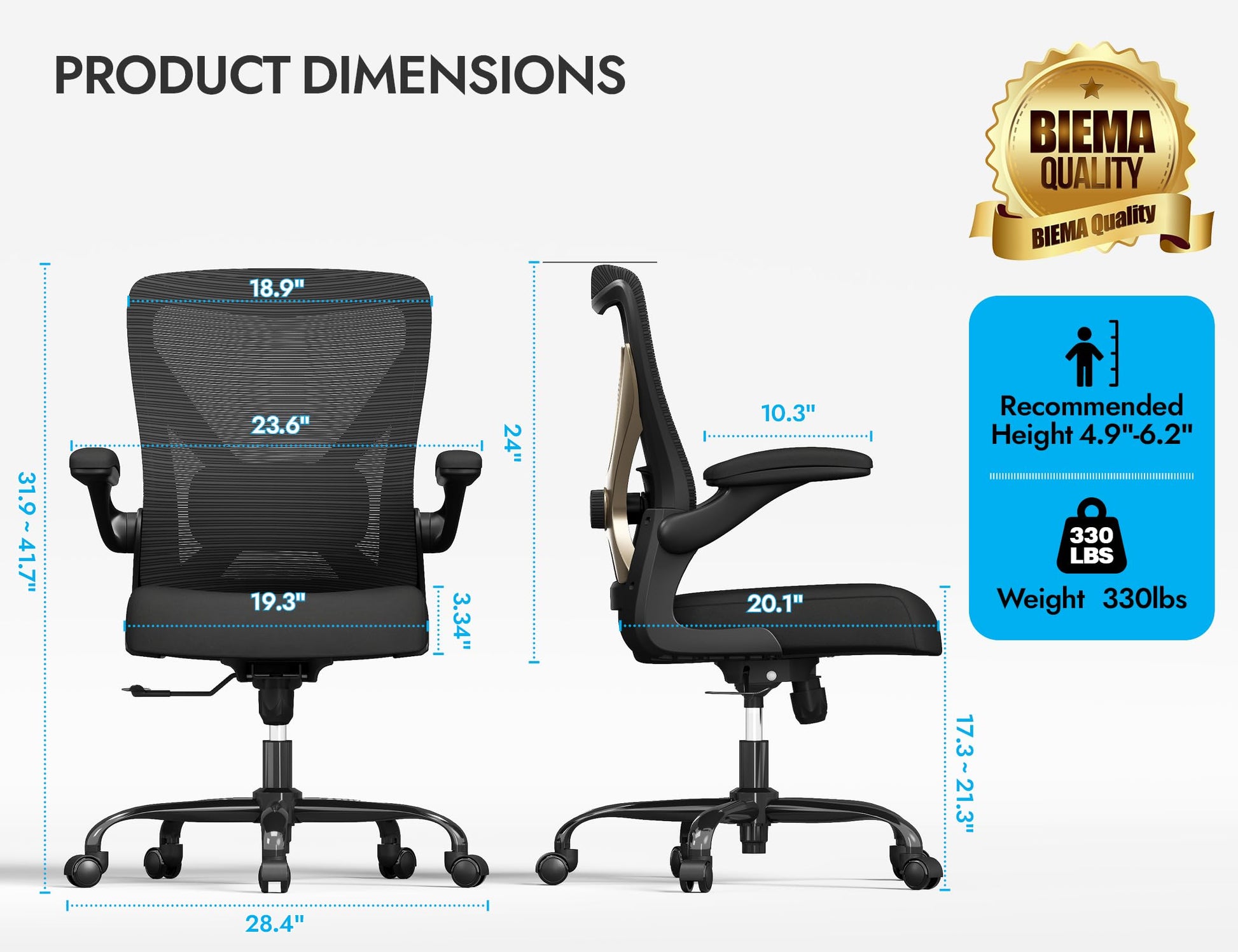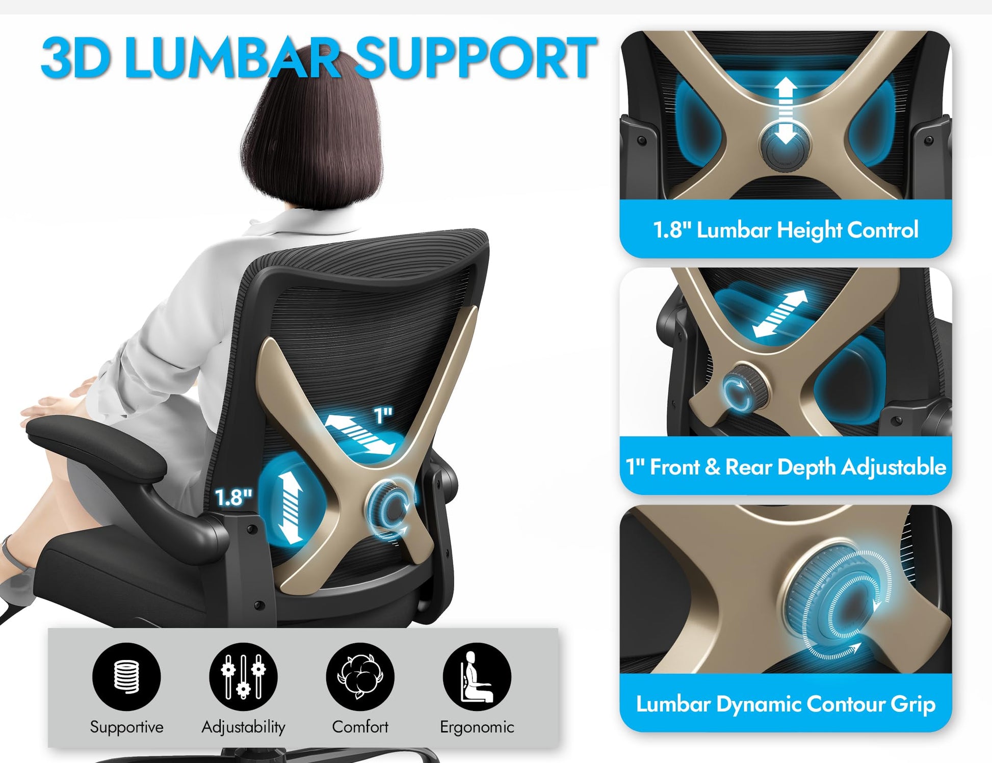 • Ergonomic Office Chair: Experience unparalleled support with our ergonomic office chair, designed to provide comprehensive assistance for your back, hips, and arms. Tailored lumbar support ensures your comfort and well-being. Suitable for people of about 5'5' to 6'2'. Easily adjust seat height, backrest, and flip-up arms to cater to diverse needs, offering comfortable support during extended periods of sitting