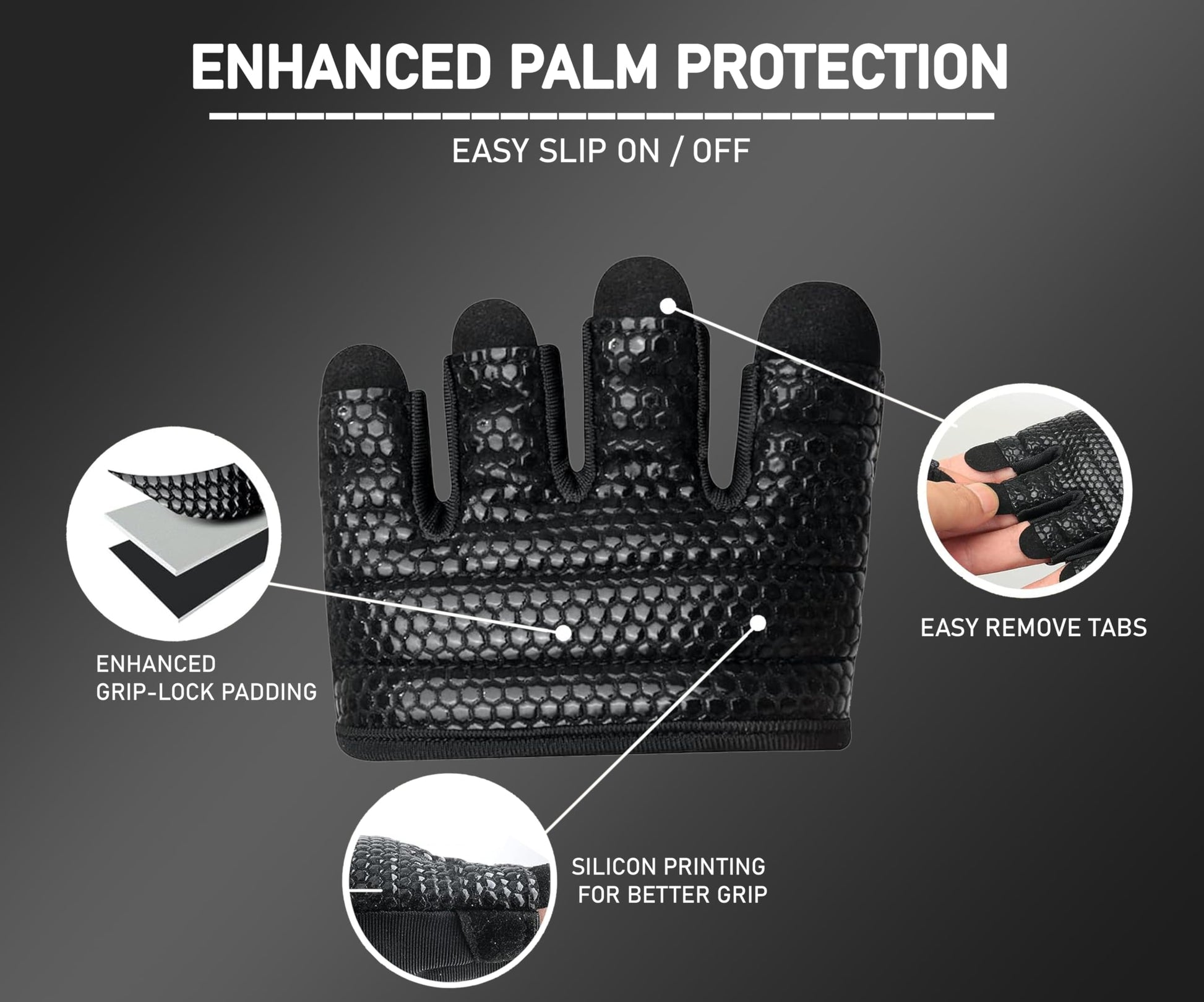 FITNESS FORCE Workout Gloves for Men & Women Partial Weight Lifting Gloves Non-Slip Gym Gloves Lifting Grip Calluses Guard Fingerless Exercise Gloves with Full Palm Protection (Black, Medium)