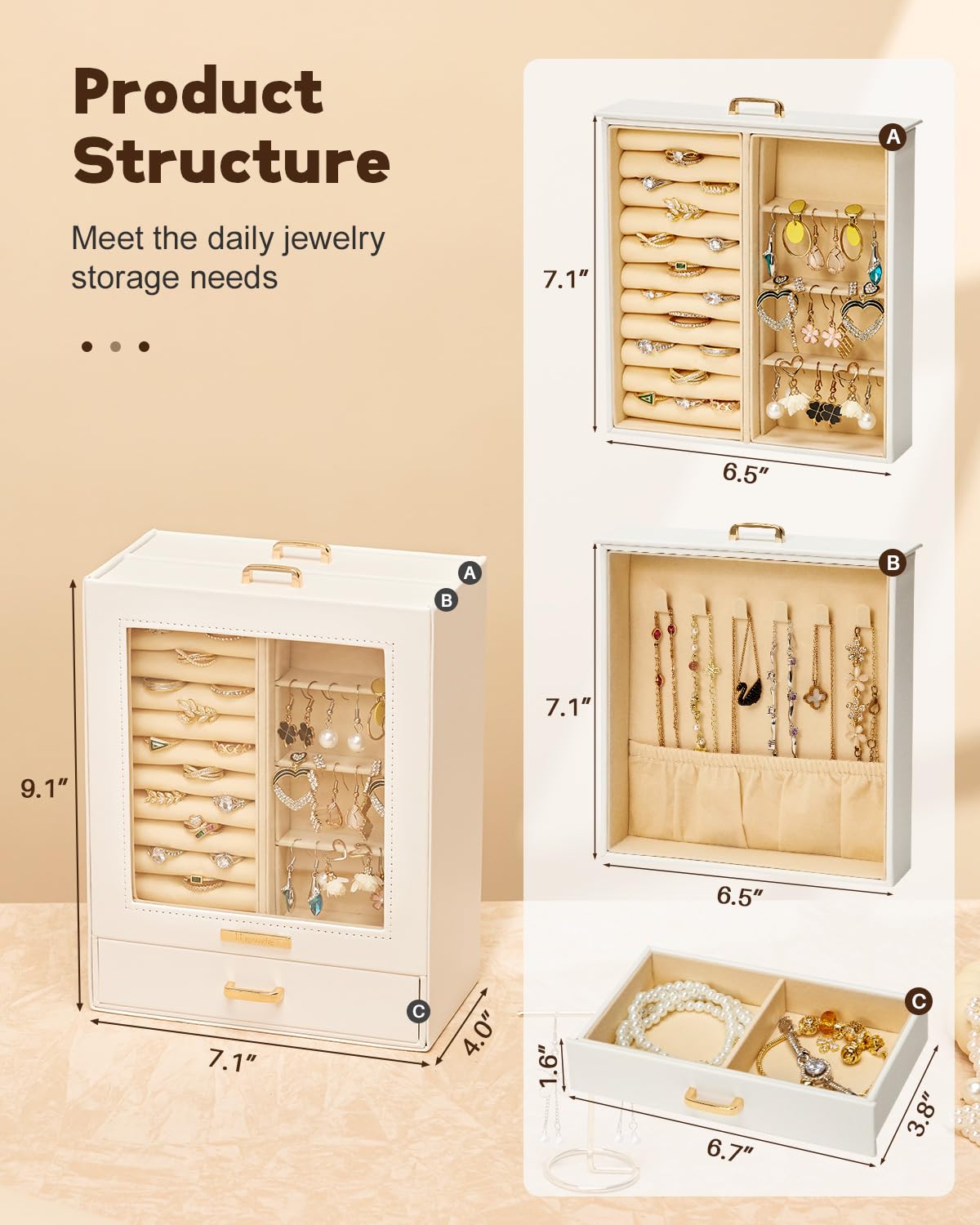 • PERFECT DETAILS: Each drawer is equipped with a galvanized metal handle. A large transparent glass window in front of the jewelry box, offers you an open view of the displayed jewelry accessories, making it easy for you to take and place jewelries