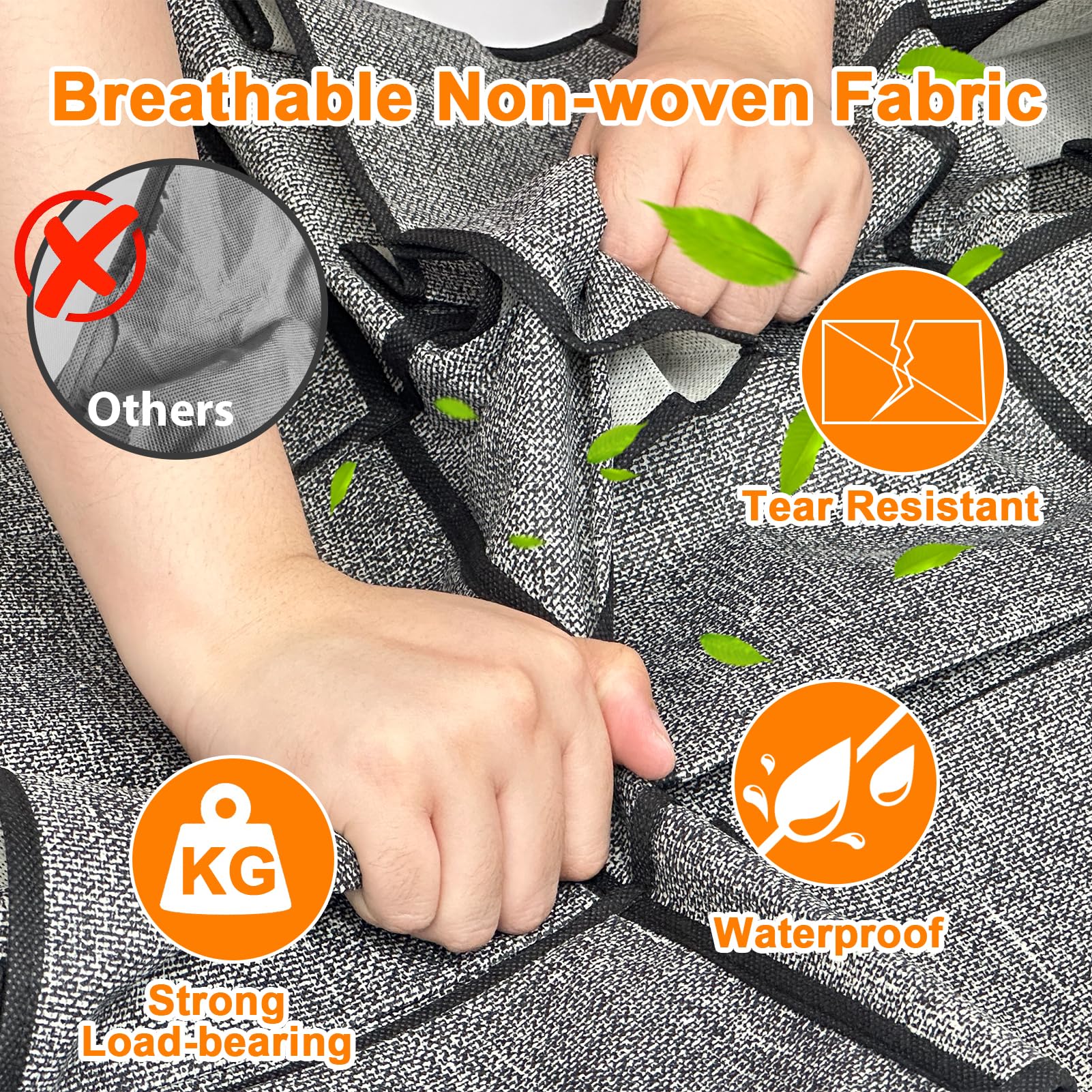 • STURDY THAN NORMAL: This homyfort over the door shoe organizer is made of breathable and durable non-woven fabric and come with 4 sturdy metal hooks, include 24 big and deep pockets. This hanging shoe organizer for closet measures 61.4 x22 inches.