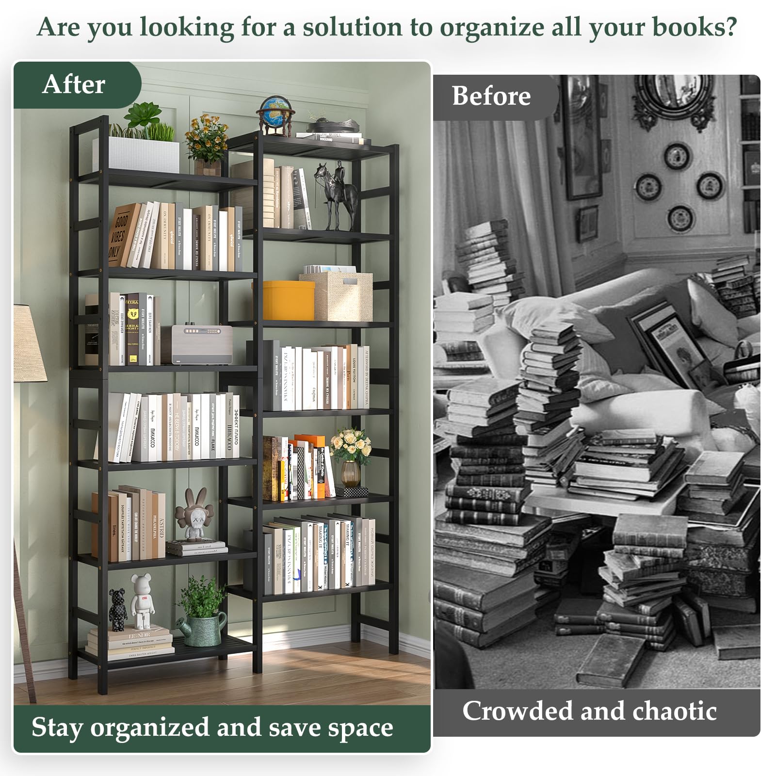 • Massive Storage Space: Dimensions are 41.14” W x 72.44” H x 10.63” D. The 6-tier double wide bookshelf features 12 individual open shelves, providing ample space for your books, collectibles, decorations, potted plants, photo frames, and more. Each layer can hold up to 44 lbs, for a total weight capacity of 528 lbs.