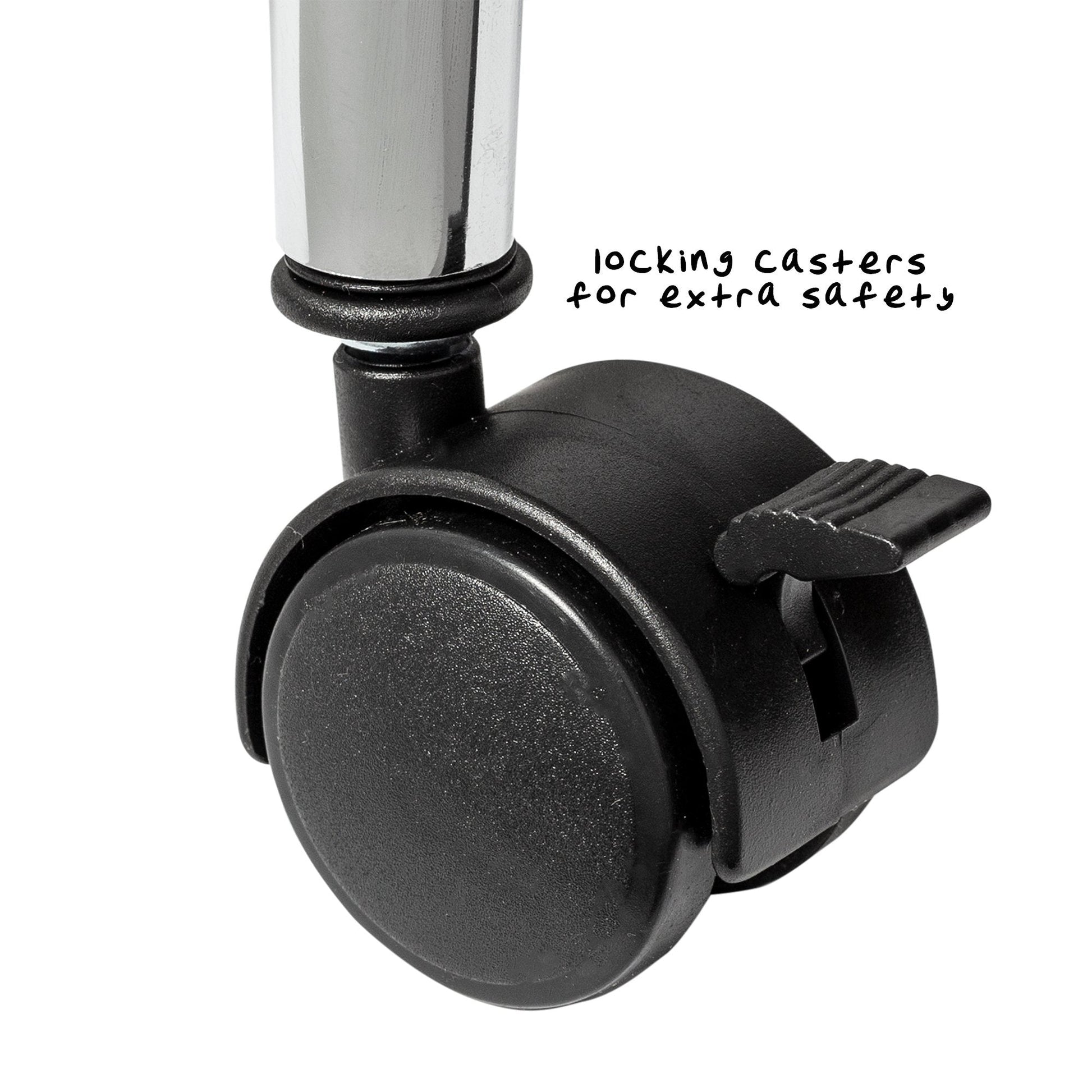 • Locking wheels provide maneuverability and stability when needed