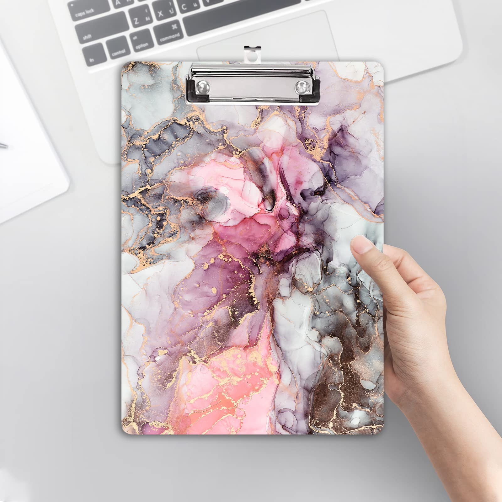 Hongri Wooden Clipboard, Fashion Design Clip Board for Classroom Students,Teacher, Women, Kids, Cute Custom Pattern, Standard Letter Size 9 x 12.5 in with Low Profile Metal Clip, Black Red Marble