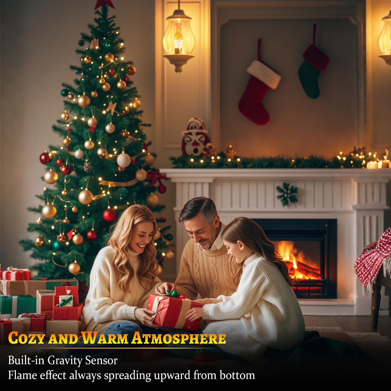 • 🔥Gentle Dance of a Flame🔥 - HoogaLife flickering flame light bulbs features a unique design that mimics the effect of real flames gently swaying in a natural breeze, as built-in gravity sensor, the flame effect will always spreading upward from bottom, making flame looks even more realistic and natural, copying the gentle dance of a flame. These flickering night light bulbs are awesome addition to Halloween, or Christmas decor, and they can instantly turn any space into a cozy, festive haven