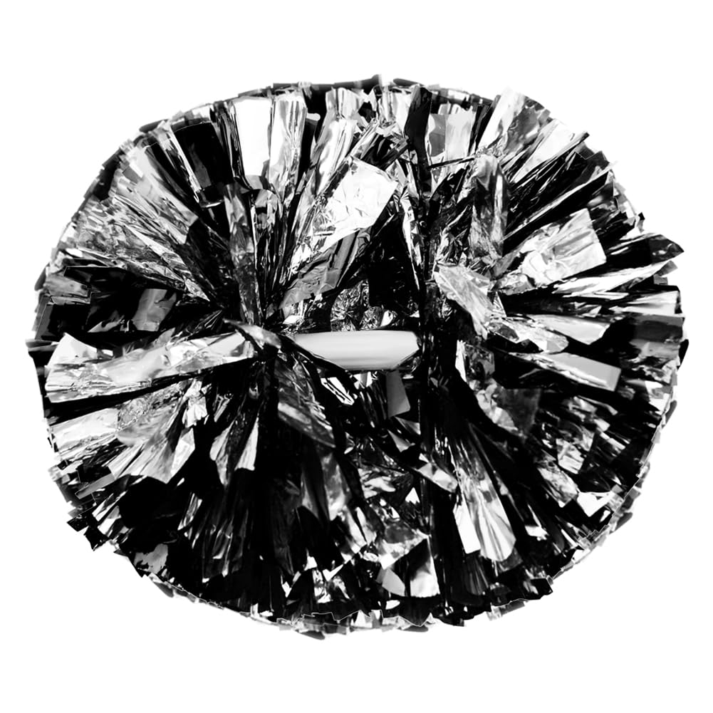 Hooshing 2 Pack Cheerleading Pom Poms Black and Silver with Baton Handle for Team Spirit Sports Dance Cheering